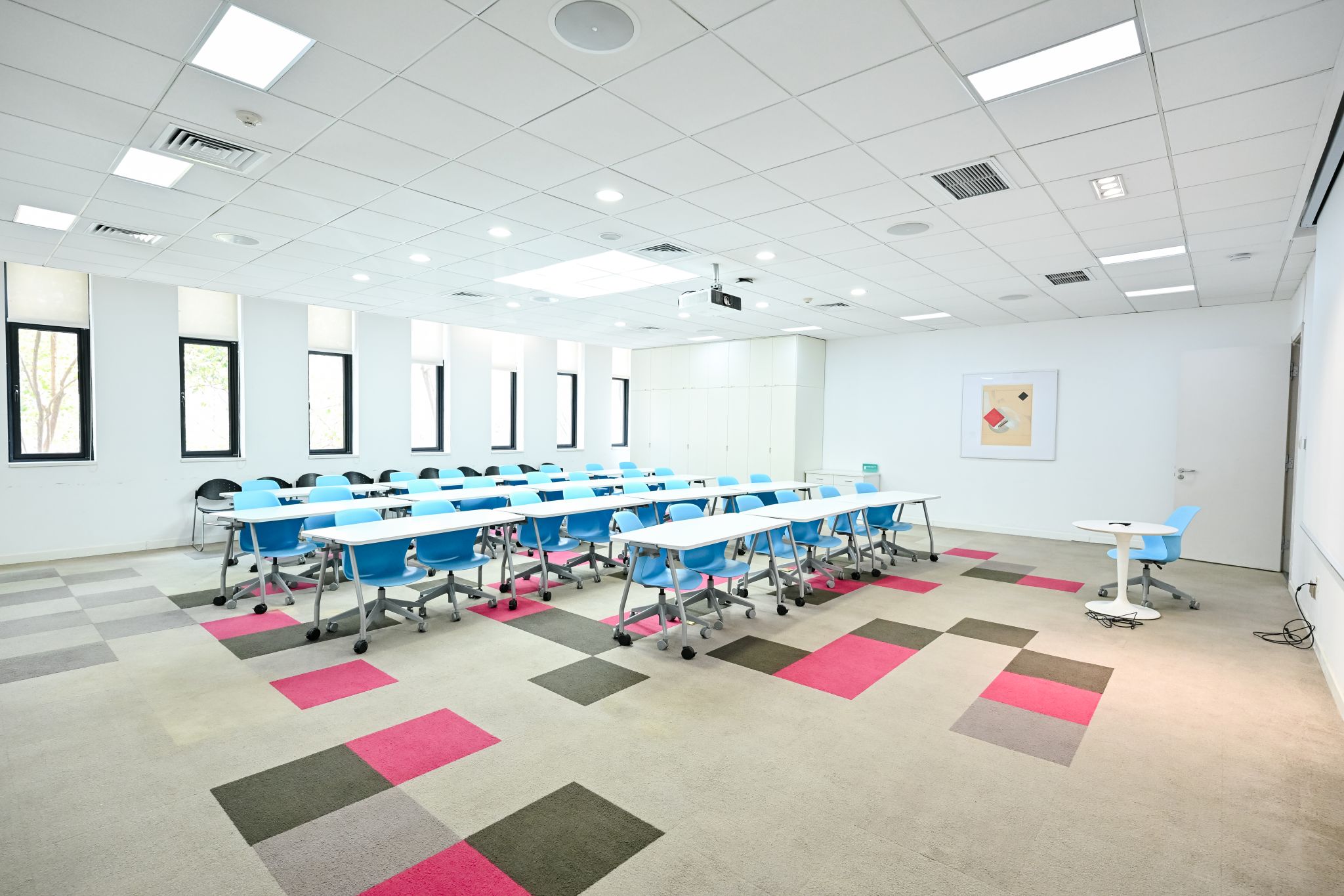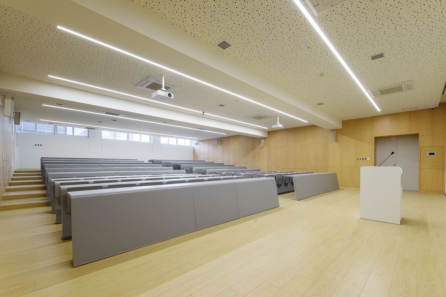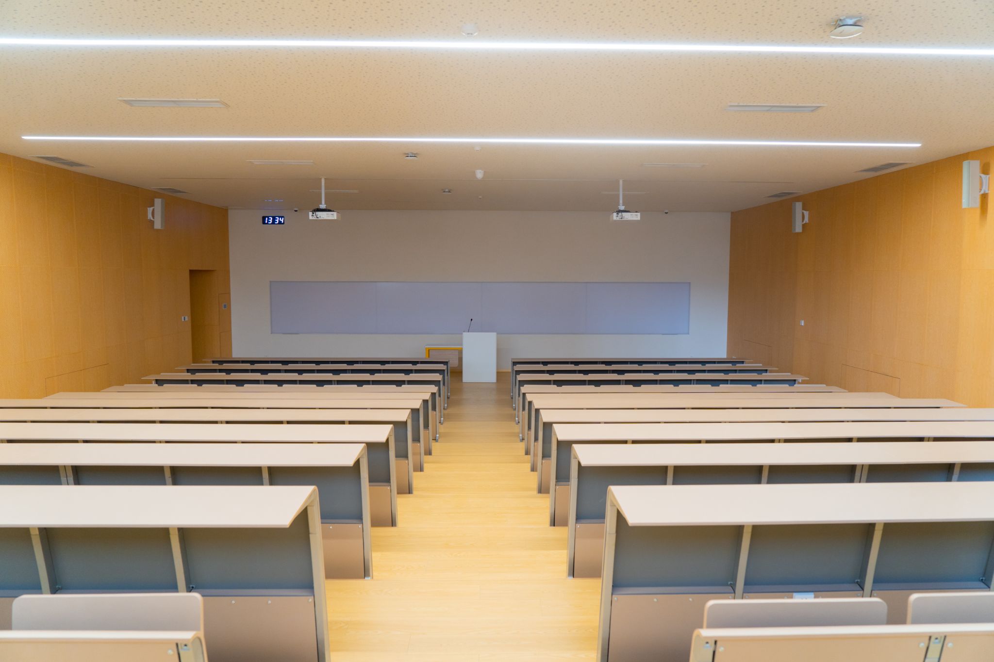 The Multifunctional Lecture Hall (Room 16) at the Students Activity Center can seat 120 attendees. It is equipped with professional lighting and sound systems, along with movable modular tables and chairs. The adaptable space supports academic forums, lectures, workshops, and club events.