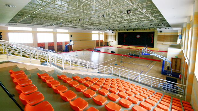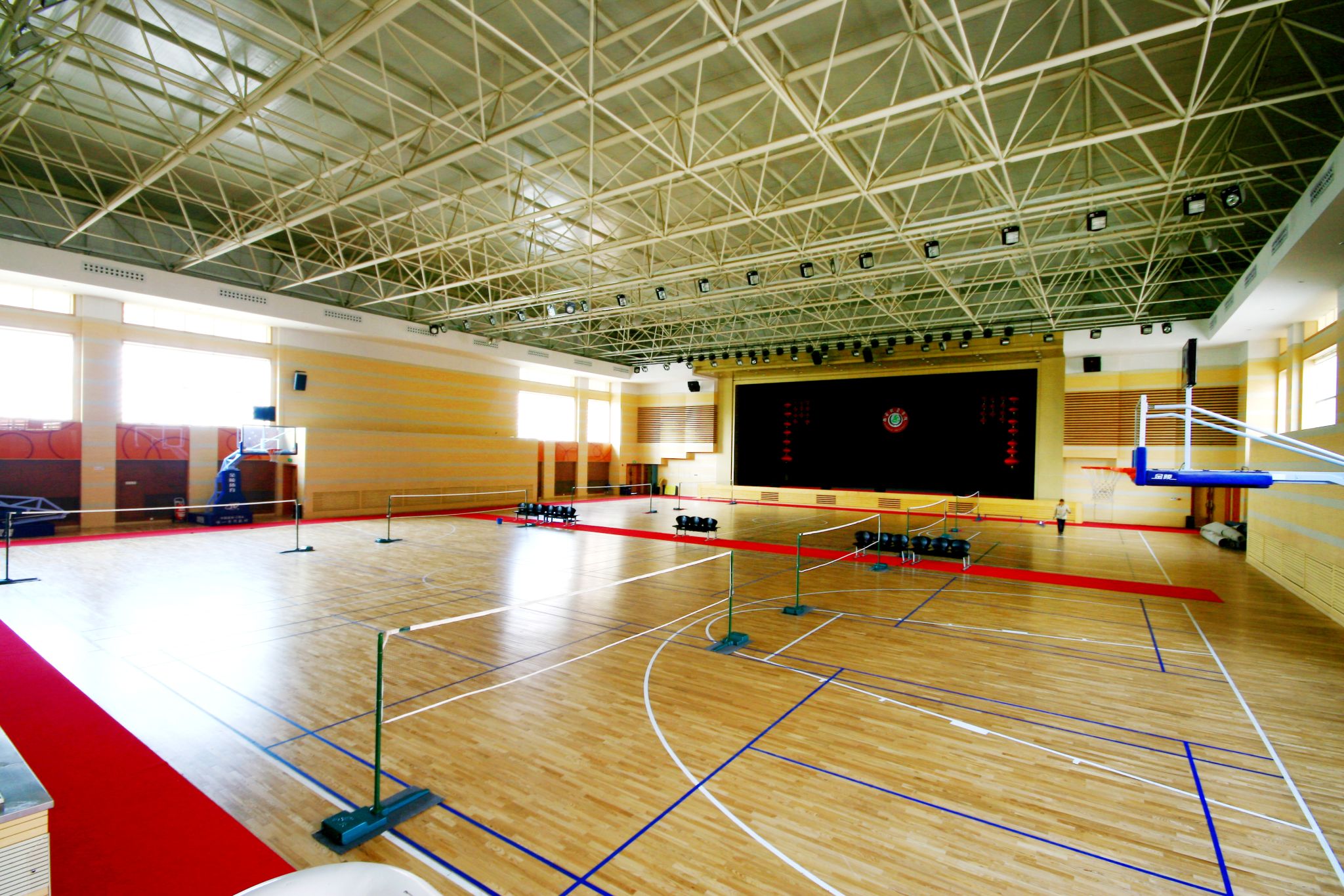 The indoor gymnasium, with an area of 4,130 square meters, accommodates over 2,000 participants for a variety of large events. It is a comprehensive venue for hosting sports events, art performances, conferences, and physical training. The gymnasium comprises five zones: lobby, stands, training area, stage, and basement. It houses 5 table tennis tables, a spinning bike room, 2 standard basketball courts, 8 badminton courts, and a gym.