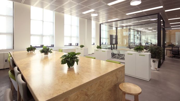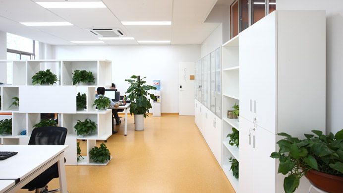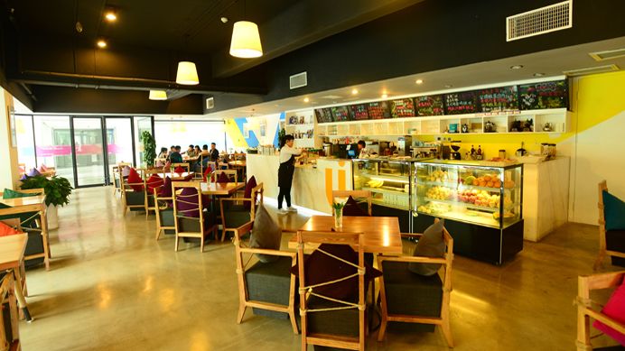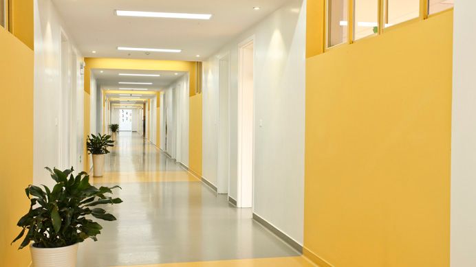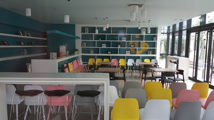 The four teaching blocks have independent entrances and reception areas, which are distinguished by different signs and wall colors. Combining the unique concept and spirit of each school, designer Stéphane ROUX gave them distinct themes. The Eurasia Art and Design School adopts an ochre tone, reminiscent of the color of the land, which is simple yet creative. The School of Data Science features a lively yellow color. The main color of the School of Accounting and Finance is calming blue. The School of Culture & Media is adorned in vibrant water blue. This difference enriches the building's overall outdoor aesthetic. The four seemingly different small "worlds" are interconnected by corridors, realizing resource sharing and integration among the schools, including academic exchanges among programs and mutual absorption of concepts among students from different backgrounds, which significantly boosts creativity.