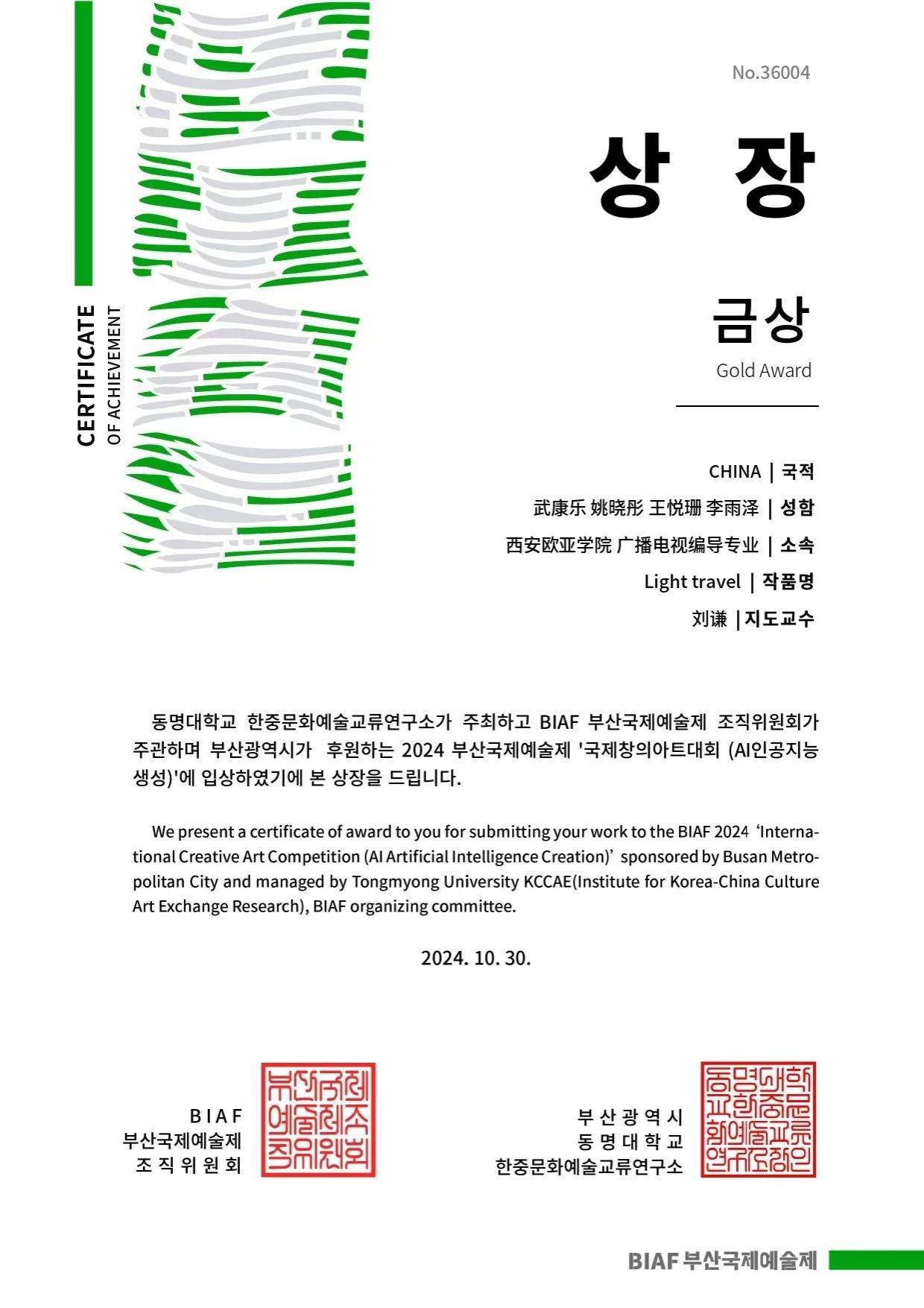 "Light Travel" was adapted from the graduation speech of Professor Hu Jianbo, Founder of Xi'an Eurasia University, and was created with the help of AI. The work tells the story of a little boy on a fantastical dream journey, where he meets an ancient sage. Together, they witness the "good city-state" and the "bad city-state," and the boy comes to understand the essence of order and "doing one's duty." Eventually, he finds his own light in the ordinary. By combining AI technology with a profound story core, this work expands the possibilities of new-form film and TV creation. The perfect fusion of art and technology has caught the attention of international audiences.
