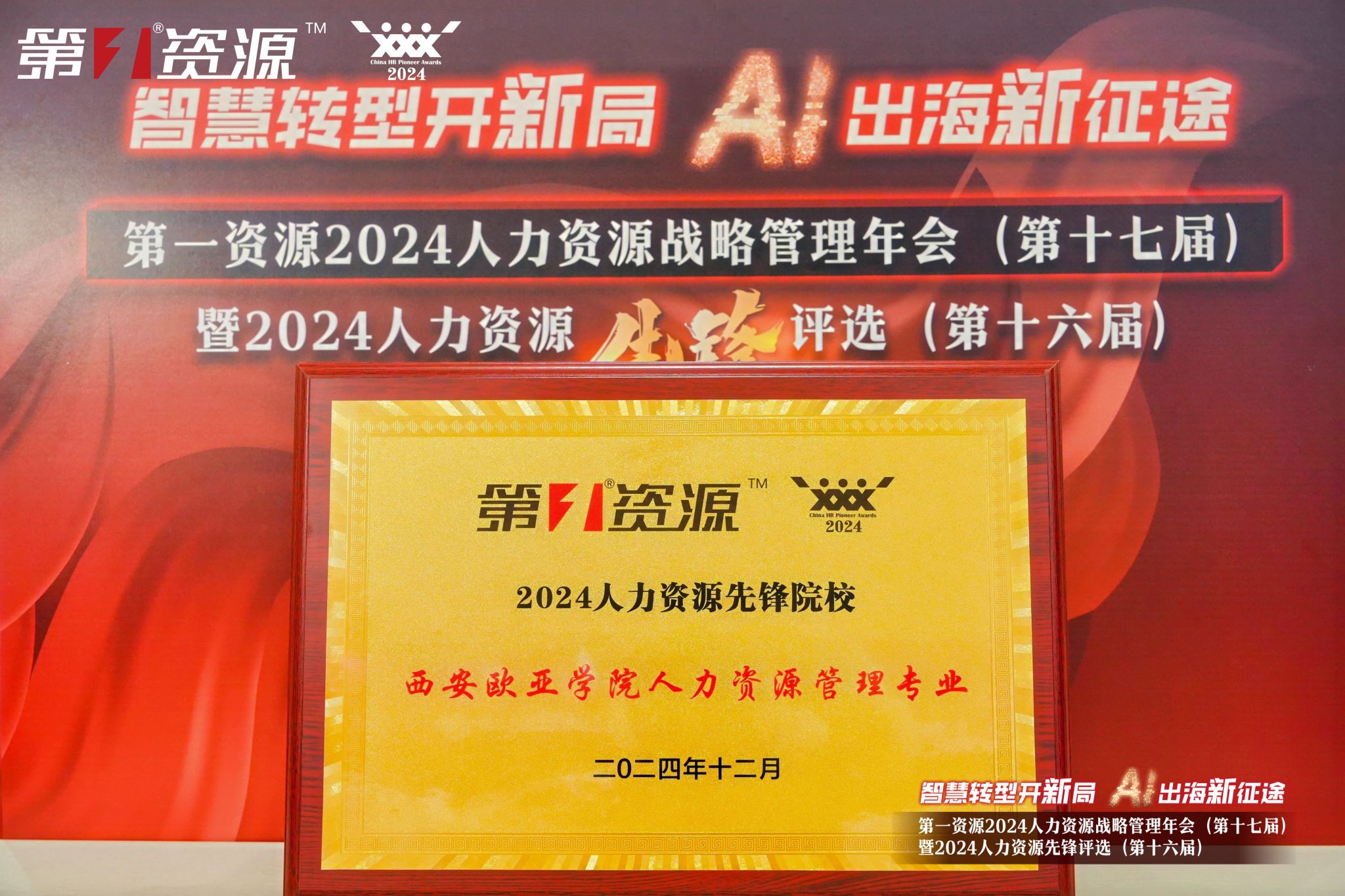 On December 20, 2024, the TopHR 2024 Human Resources Strategic Management Annual Conference (the 17th) and the 2024 Human Resources Pioneer Award Ceremony (the 16th) were grandly held in Shanghai, China. After more than half a month of rigorous evaluation by a panel of expert reviewers from well-known higher education institutions, enterprises, and industrial parks, the Human Resource Management Program at Xi'an Eurasia University won the "2024 Human Resources Pioneer Institution" award.