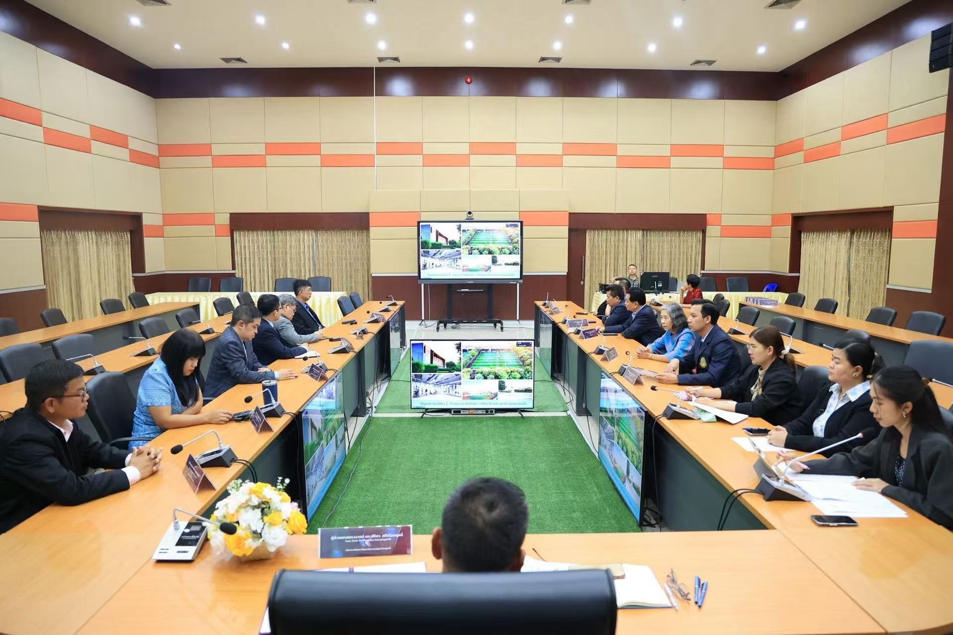 Dr. Preecha Sriaungrith, President, Dr. Nikom Yokayana, Vice-President, Dr. Jun Jiang, Dean of the International College, and others from Phetchaburi Rajabhat University attended online. Professor Zhang Lefang, Vice President of Xi'an Eurasia University, Associate Professor Cao Xiaojuan, Deputy Dean of the School of Culture & Media, Associate Professor Chen Zhe, Assistant to the Dean, and the internationalization team witnessed this important moment together.