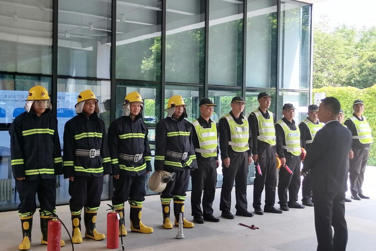 消防安全演练环节,后勤集团安保中心第四班组16名安防人员在接到报警后,迅速出警,指挥大家快速、安全、有序地撤离到安全地带,并铺设消防水带,使用消防设备把模拟火源扑灭。