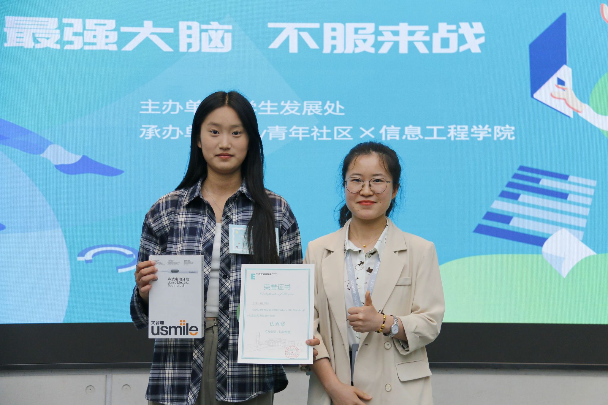 沈思源:参加此次一站到底知识竞赛,让我最有感触的是答题系统是同学们设计并投入使用的,答题系统的界面简洁明了,答完题目后也能够清晰展示和答案反馈,答题系统和活动现场积分器的搭配,使得选手能够清晰了解自己的答题情况。这种用户友好性大大降低了选手的紧张感,让我能够更加专注的参加比赛。