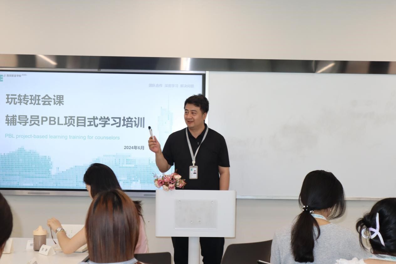 为全面提升辅导员的教学理论、方法和设计能力,夯实教育理论基础,提升社区班会实效。2024年5月30日、6月20日,学生发展处开展了2场“玩转班会课——辅导员PBL项目式学习”专项培训。培训邀请通识教育学院武晓、孔令伊担任培训讲师,全校共101名分院及社区辅导员参加培训。