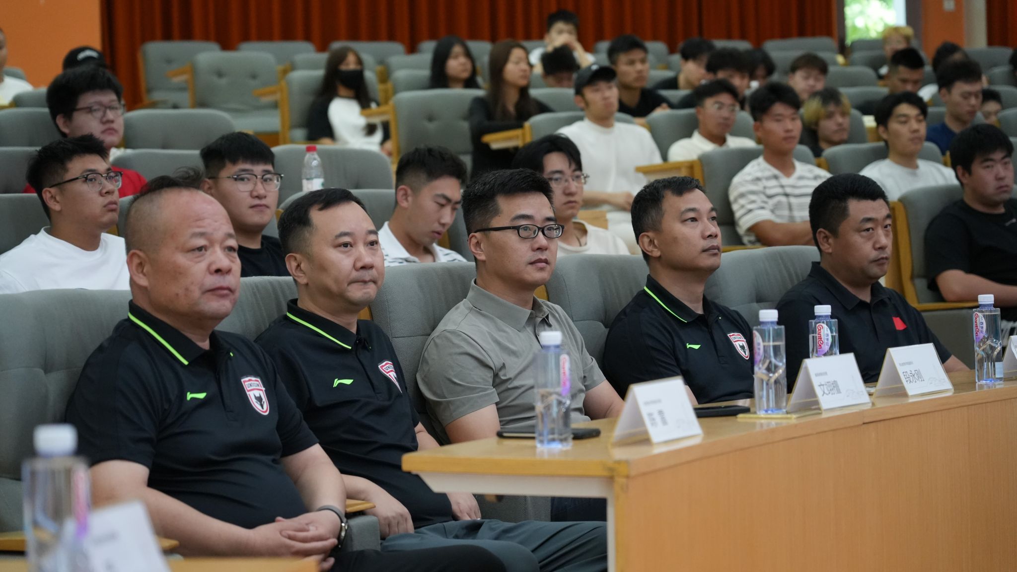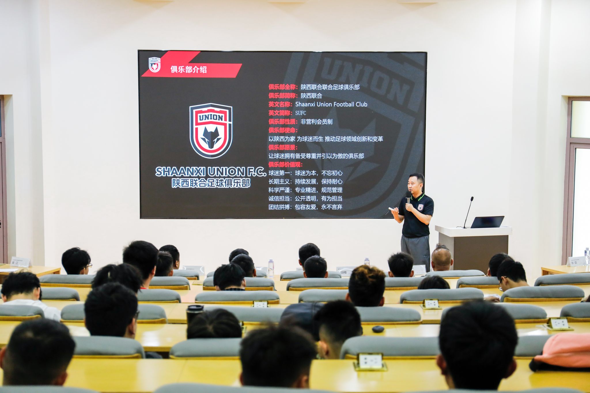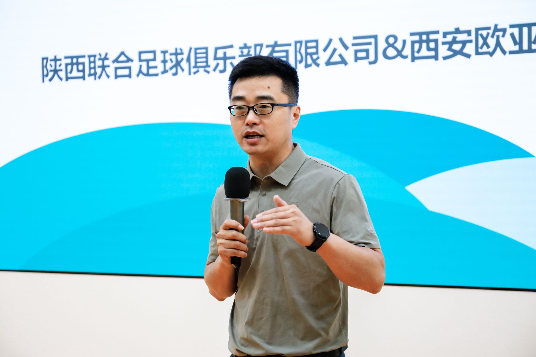 本次仪式共有6项议程,首先秦英体育总经理文翊檀介绍了陕西联合足球俱乐部及俱乐部的多元化商业运营体系。从俱乐部的成立背景、发展历程、赛事成绩、俱乐部经营思想等方面进行了全面介绍。他特别提到,俱乐部在青训体系建设方面取得了显著成效,未来俱乐部也将继续加强与高校的合作,探索体育教育与职业足球的有机结合,为更多学生提供职业发展的平台。