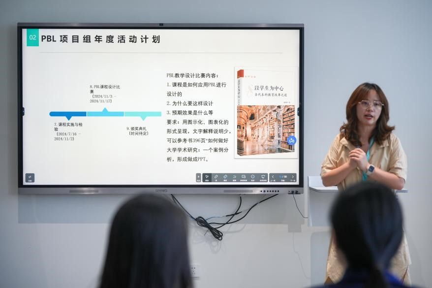 随后刘晓明老师介绍了PBL年度活动计划,涵盖了从课程设计到教学实施的全过程。邀请专家进行专题讲座,组织实操工作坊,让教师们能够深入理解PBL教学法,并将其应用于课堂教学中。此外,还将举办课程设计比赛,鼓励教师们展示创新教学设计,并通过宣传视频和颁奖典礼,分享和庆祝成果。