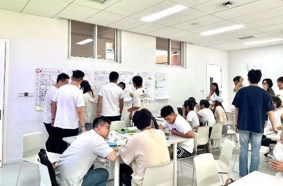 和利时公司&一鸿公司介绍了公司文化和需求后,学生组队针对具体挑战展开研究。他们不仅要评估技术可行性,还得考虑市场需求和用户体验,这种全方位的视角使他们能像雇主一样思考,并提出切实可行的创意方案。