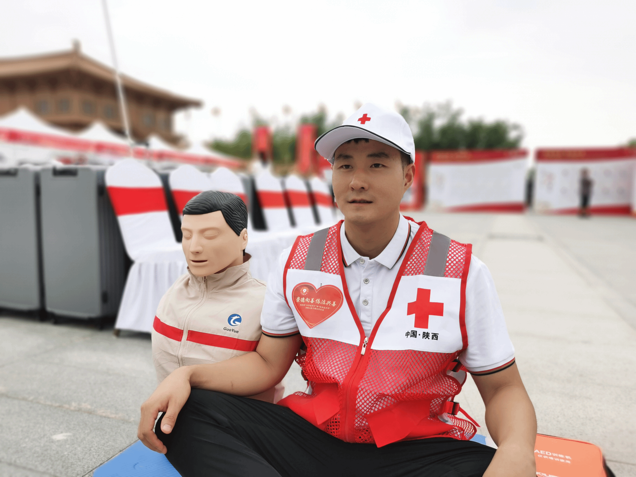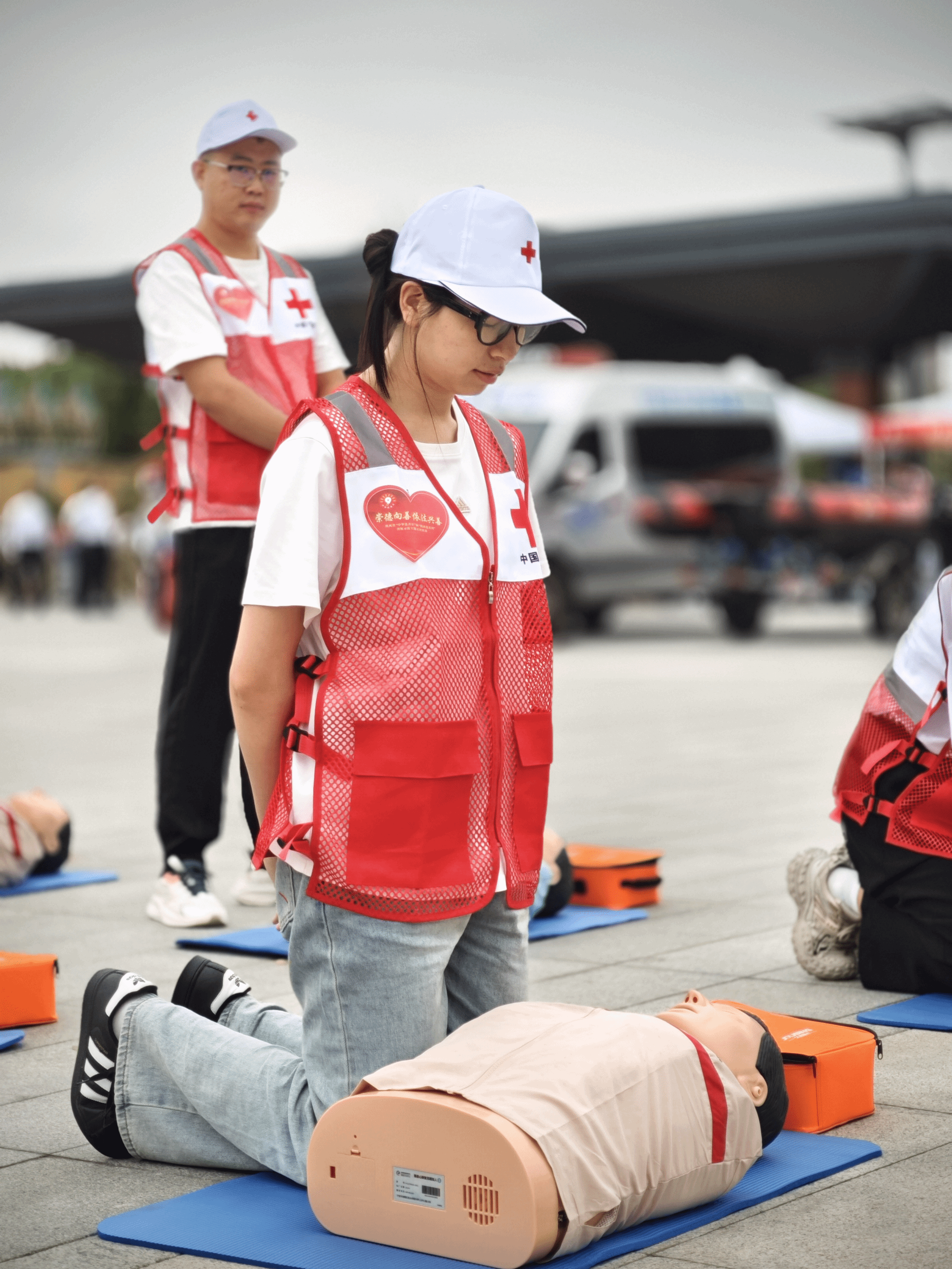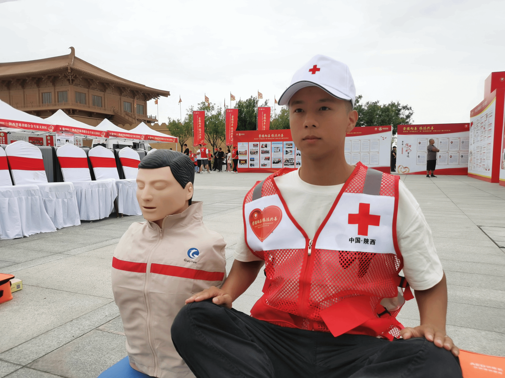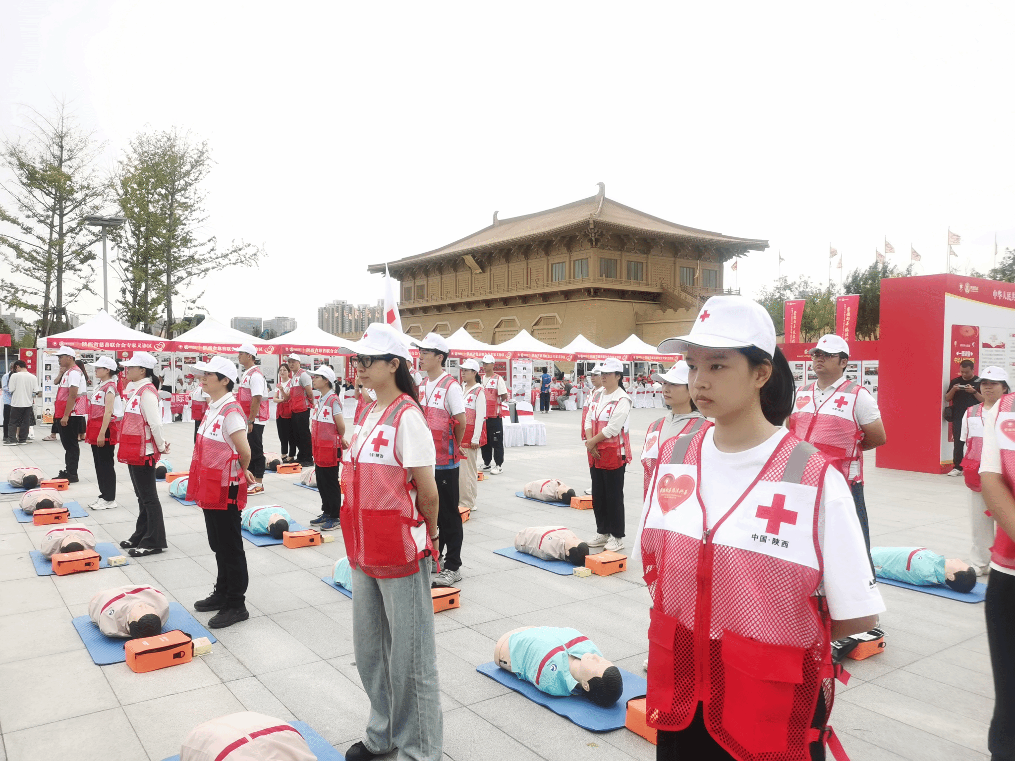 本次活动陕西省红十字会邀请了11名西安欧亚学院体育服务系的学生代表参加了心肺复苏(CPR+AED)展示和创伤救护(止血包扎固定)展示。