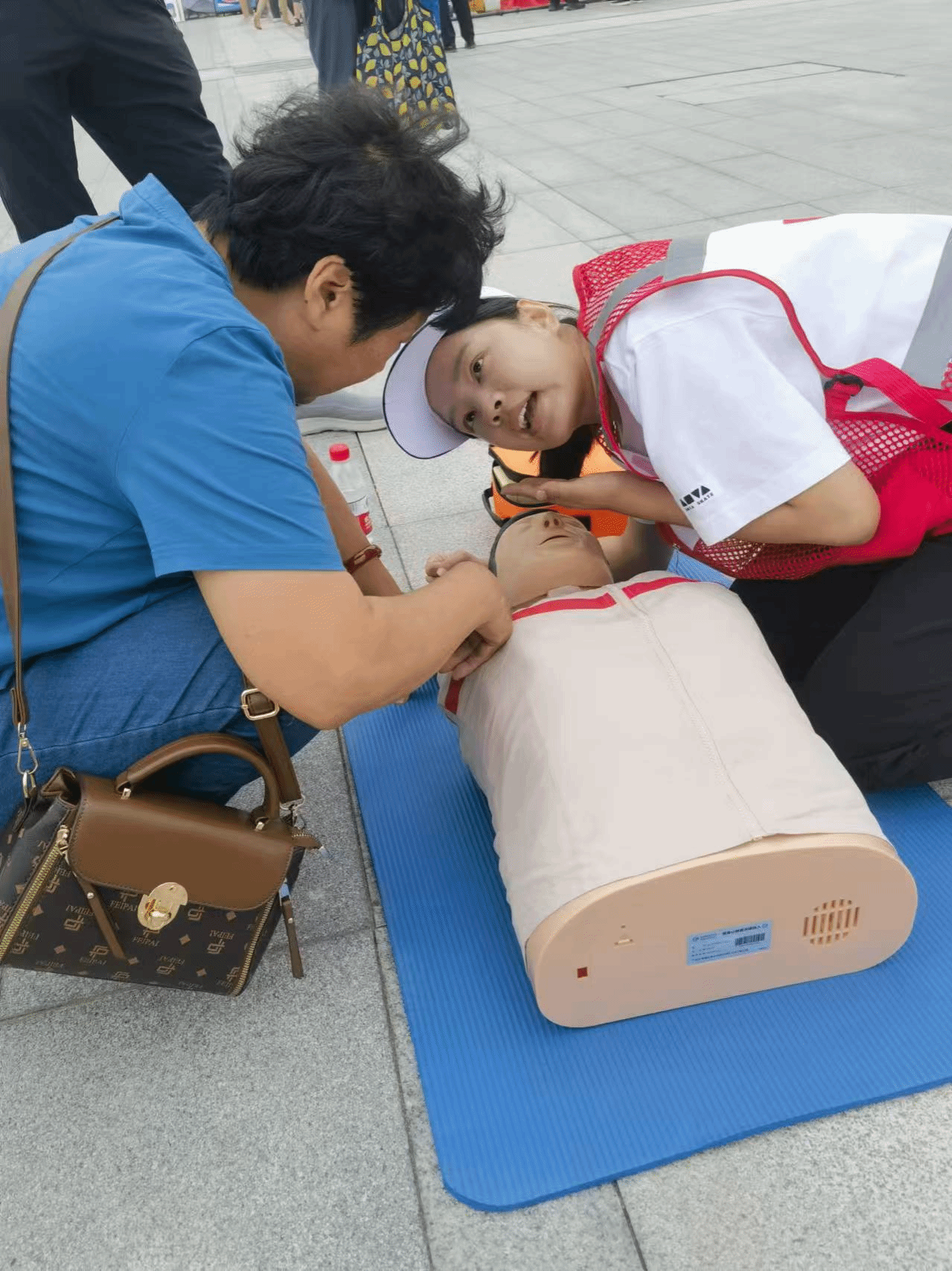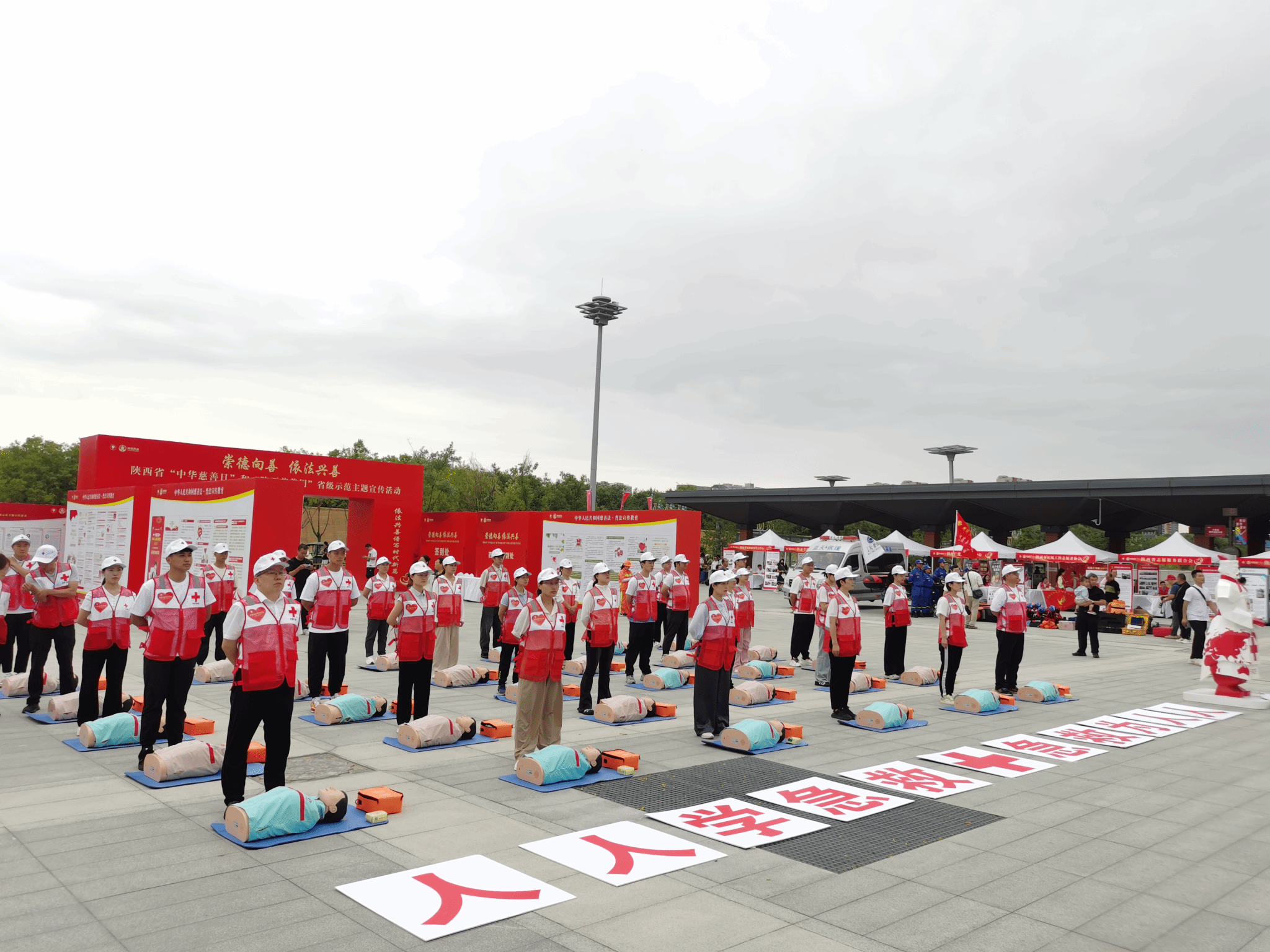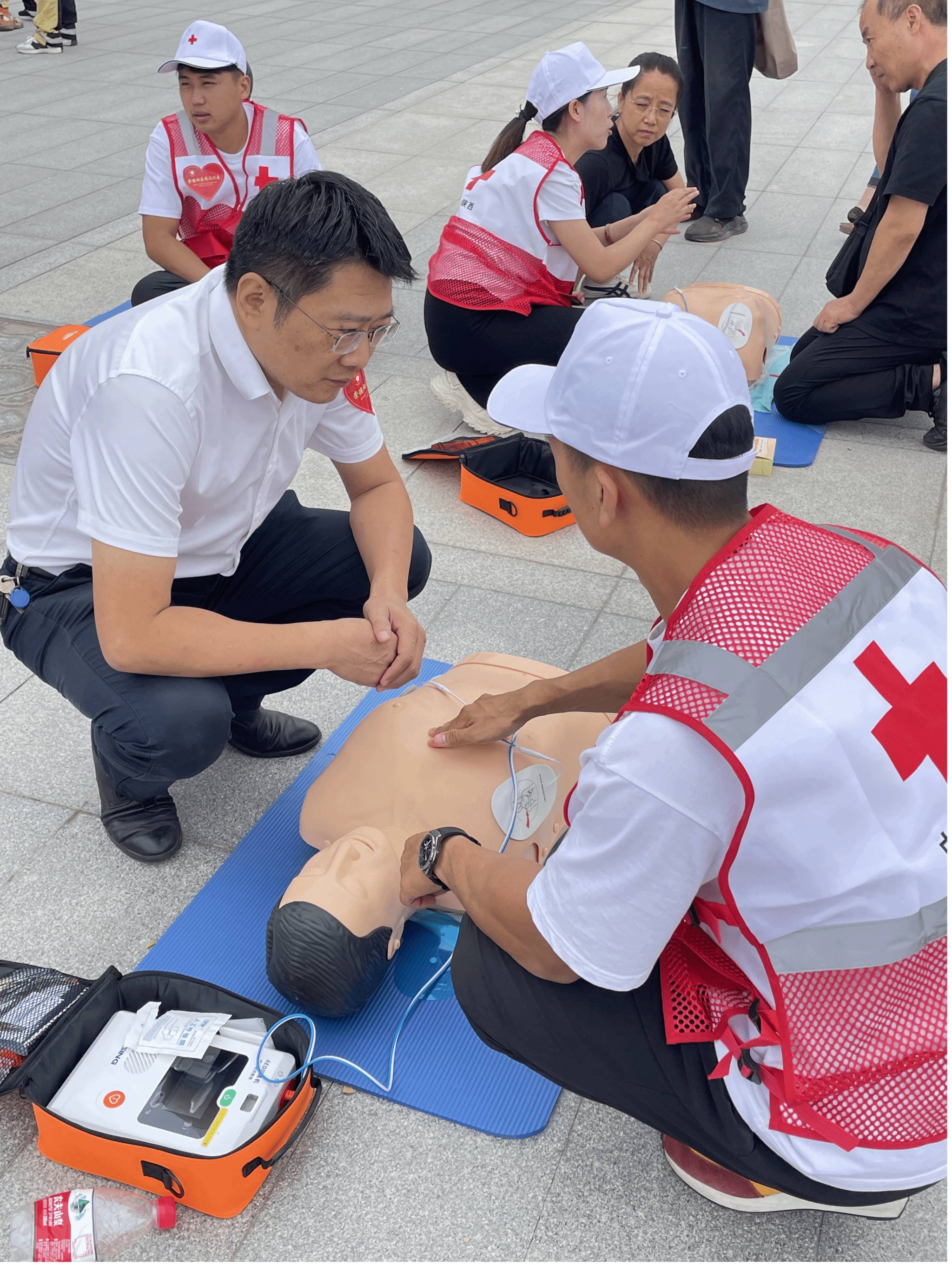 本次活动陕西省红十字会邀请了11名西安欧亚学院体育服务系的学生代表参加了心肺复苏(CPR+AED)展示和创伤救护(止血包扎固定)展示。