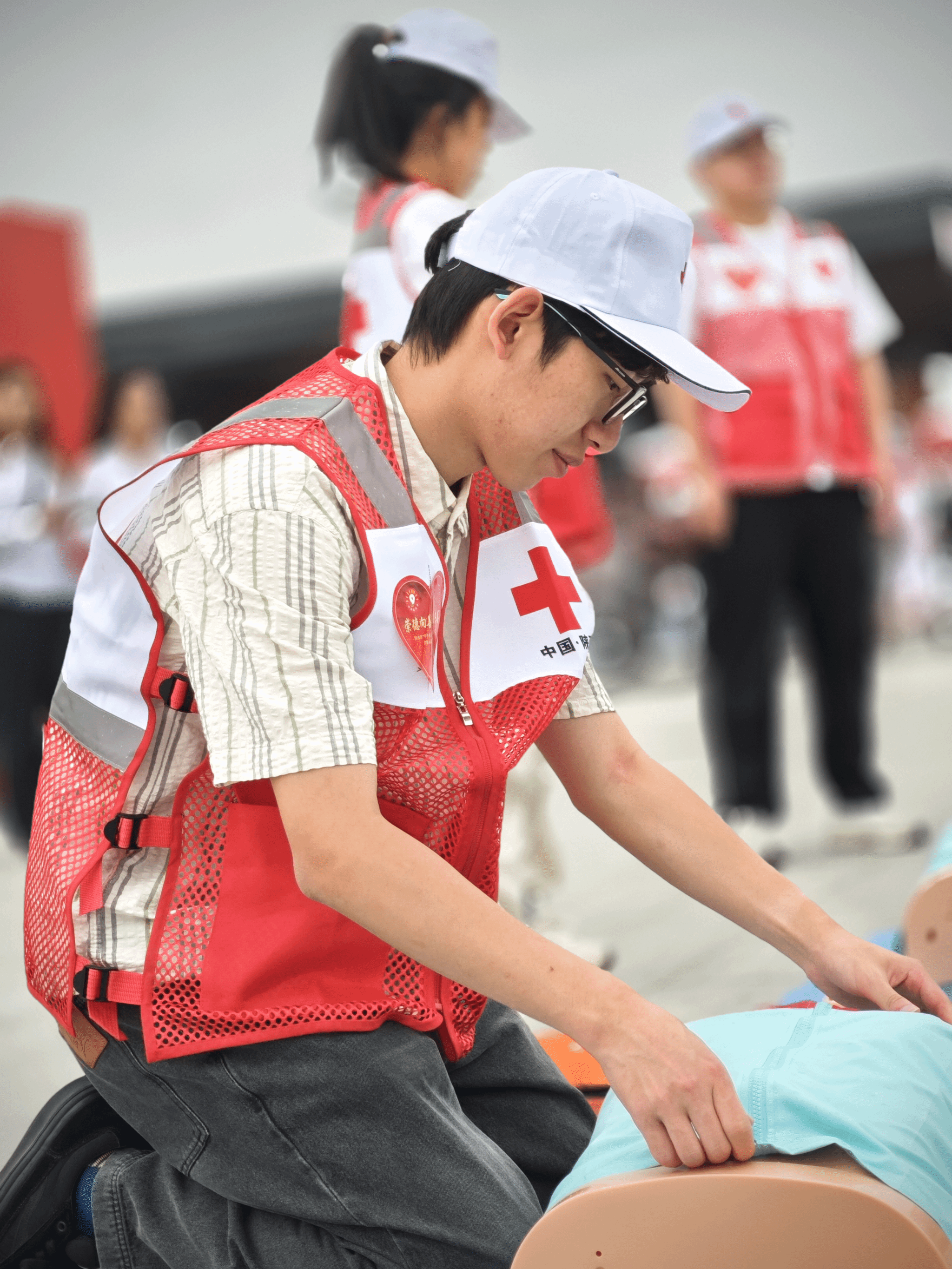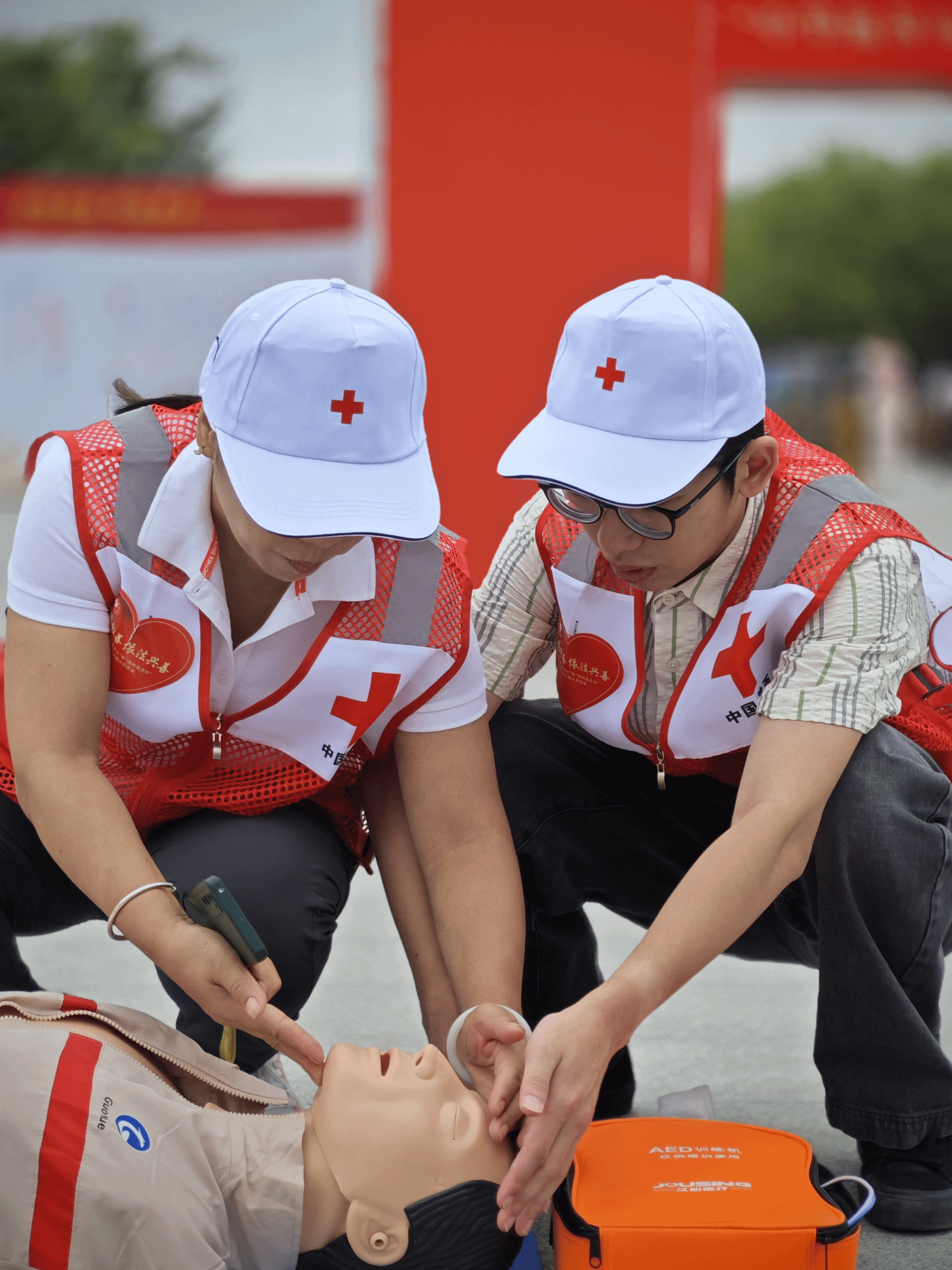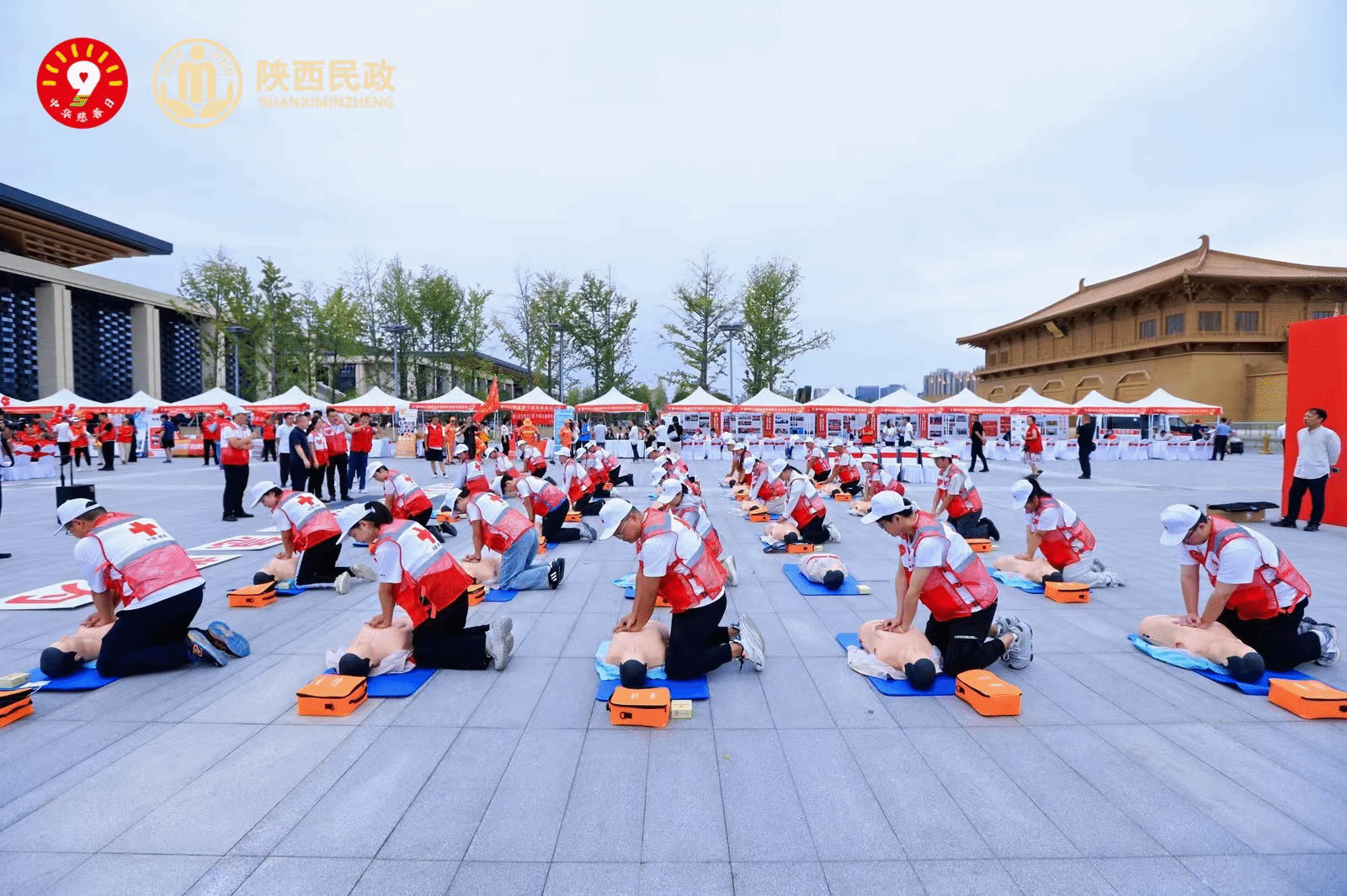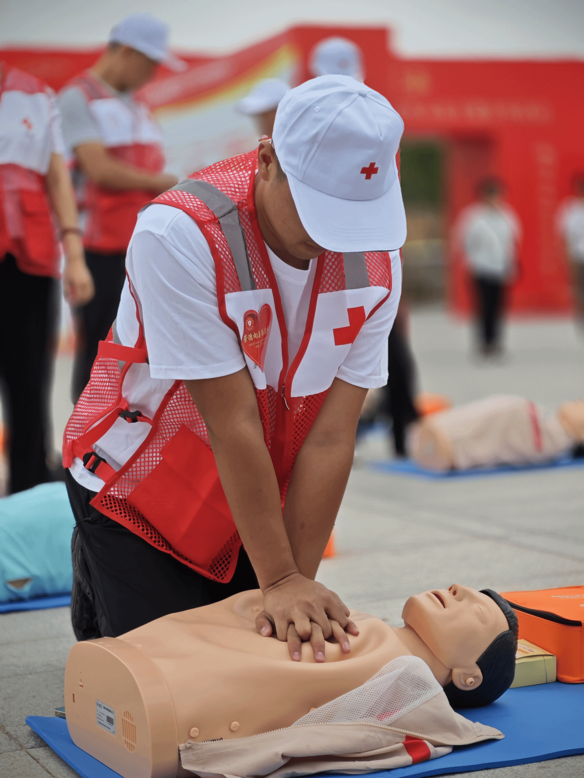 本次活动陕西省红十字会邀请了11名西安欧亚学院体育服务系的学生代表参加了心肺复苏(CPR+AED)展示和创伤救护(止血包扎固定)展示。