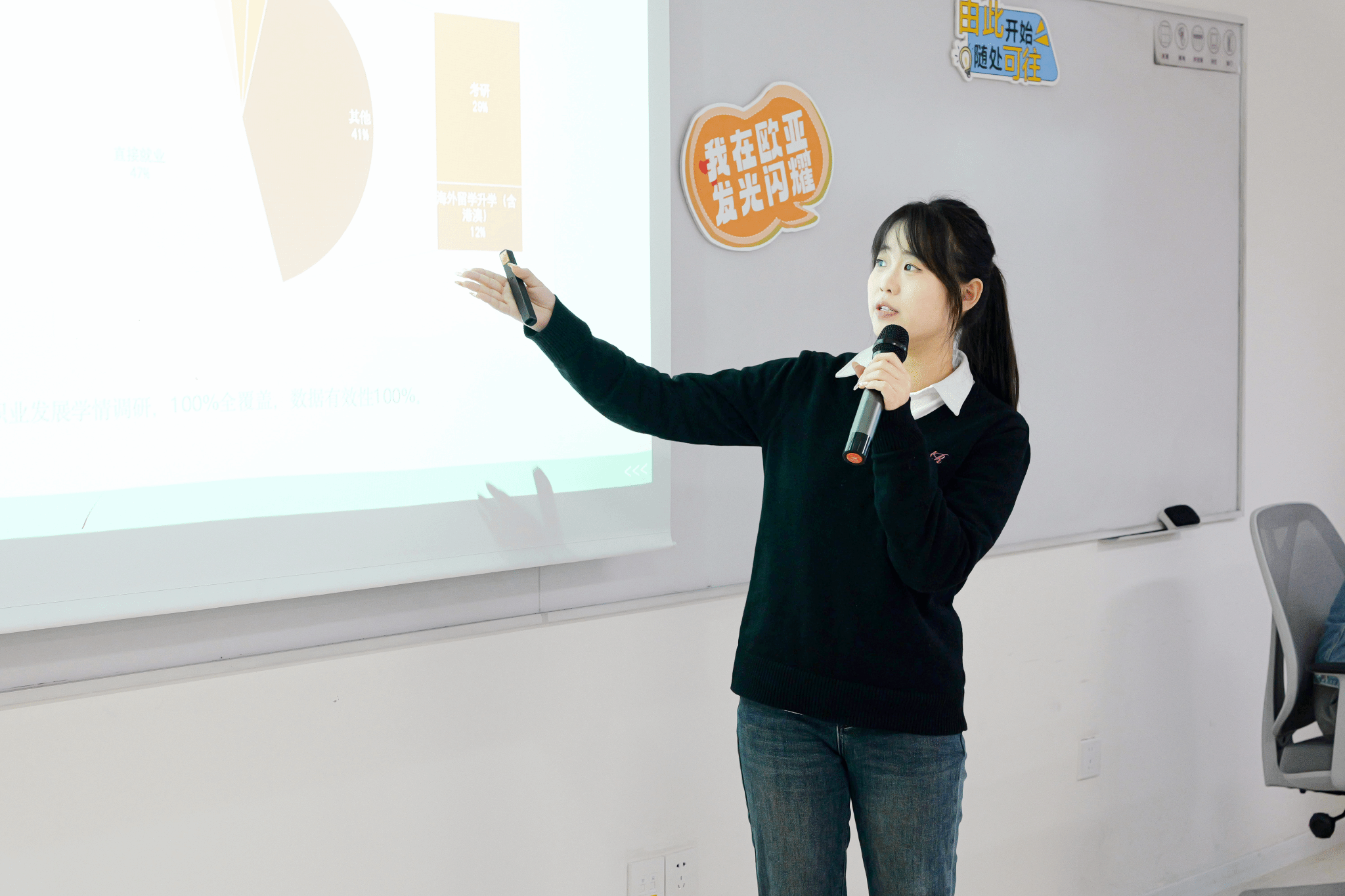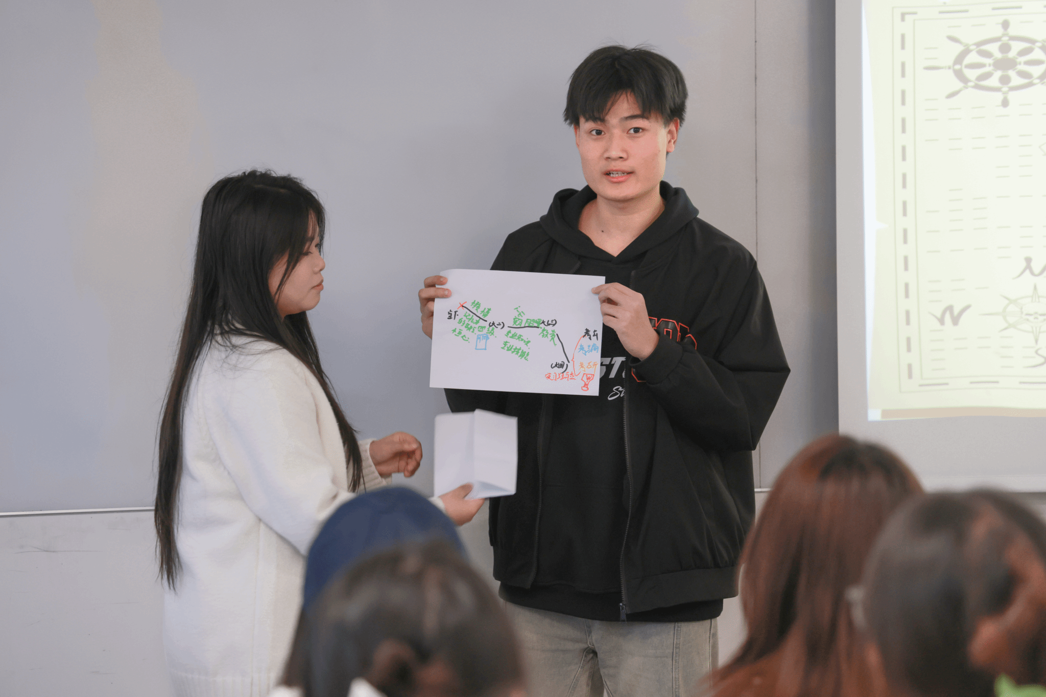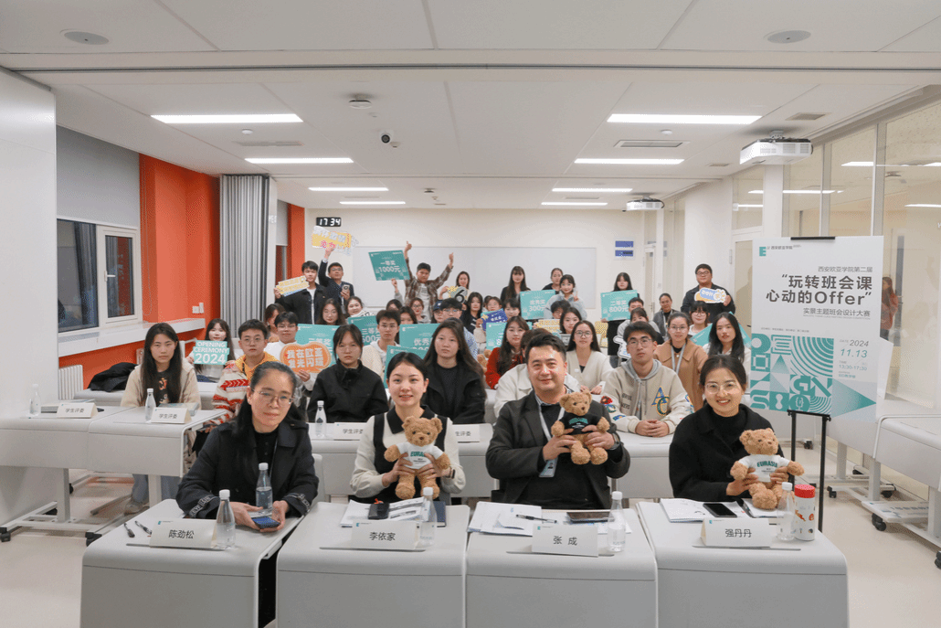 为切实提升班会育人质量,提高辅导员业务能力水平,2024年11月13日,学生发展处开展第二届“玩转班会课-心动的Offer”分院专场实景主题班会设计大赛。大赛秉持我校“以雇主为导向,以学生为中心”的教育理念,旨在唤醒同学们对职业前景的前瞻思索,强化其职业规划意识,为培养国际视野下的应用型人才蓄力。全校共9个班级,400余人参加比赛,分院9位辅导员进行现场观摩学习。教师发展中心强丹丹老师、教务处李依家老师应邀出席。