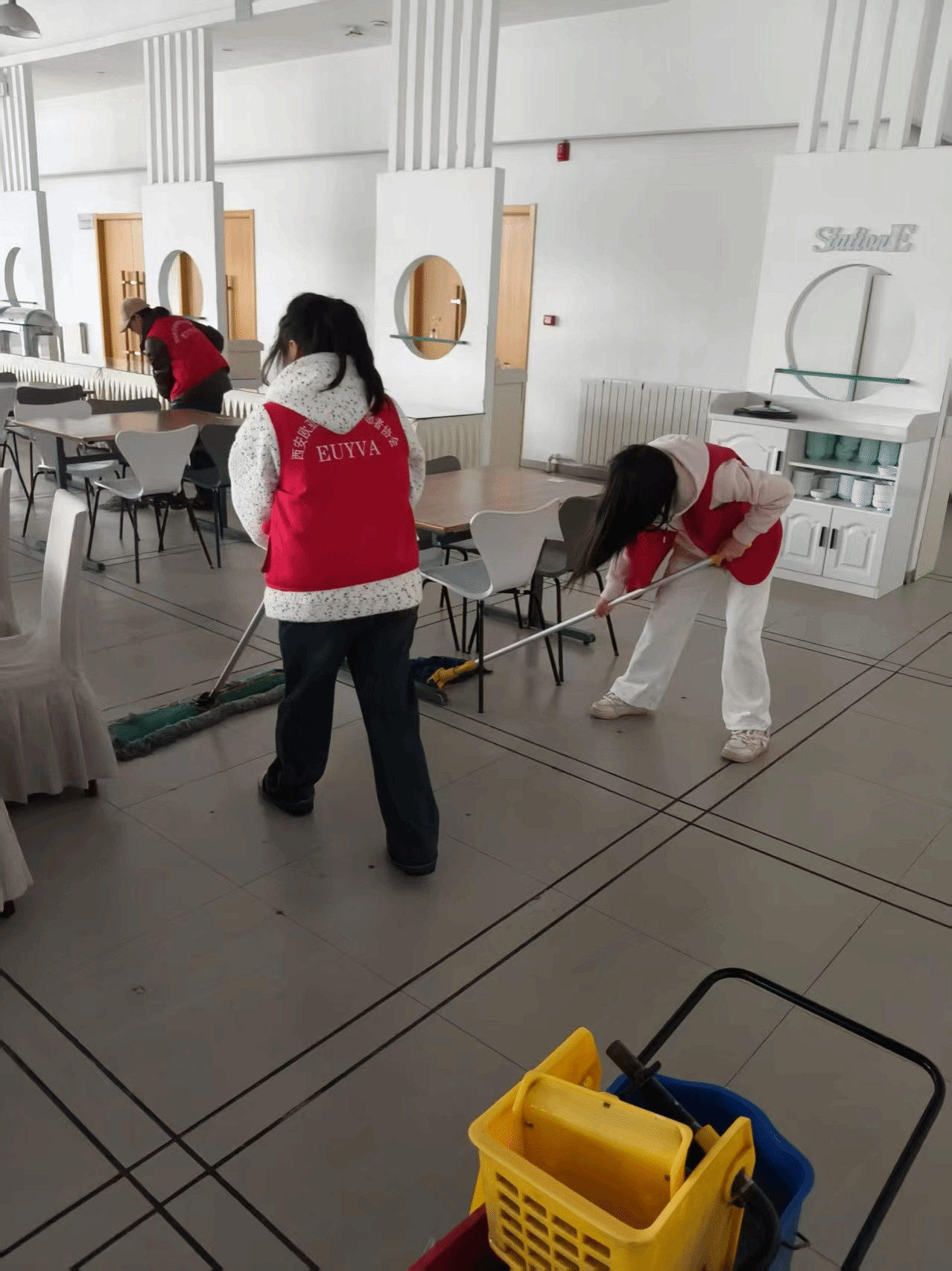 在学雷锋日这一天,西安欧亚学院青年志愿者协会的志愿者们以实际行动诠释了雷锋精神,将爱心与奉献的种子播撒在校园内外。他们首先来到了学院食堂,拿起扫帚、抹布,开始了一场别开生面的清洁行动。他们分工明确,有的清理餐桌上的残羹剩饭,有的擦拭桌椅,还有的细心打扫地面。在他们的共同努力下,食堂焕然一新,为师生们提供了一个更加整洁、舒适的就餐环境。随后,志愿者们转战我校学生公寓,他们穿梭在公寓楼间,耐心地将一辆辆电动车、自行车整齐地摆放在指定区域。这一举动不仅美化了公寓环境,还方便了同学们的出行,赢得了大家的一致好评。