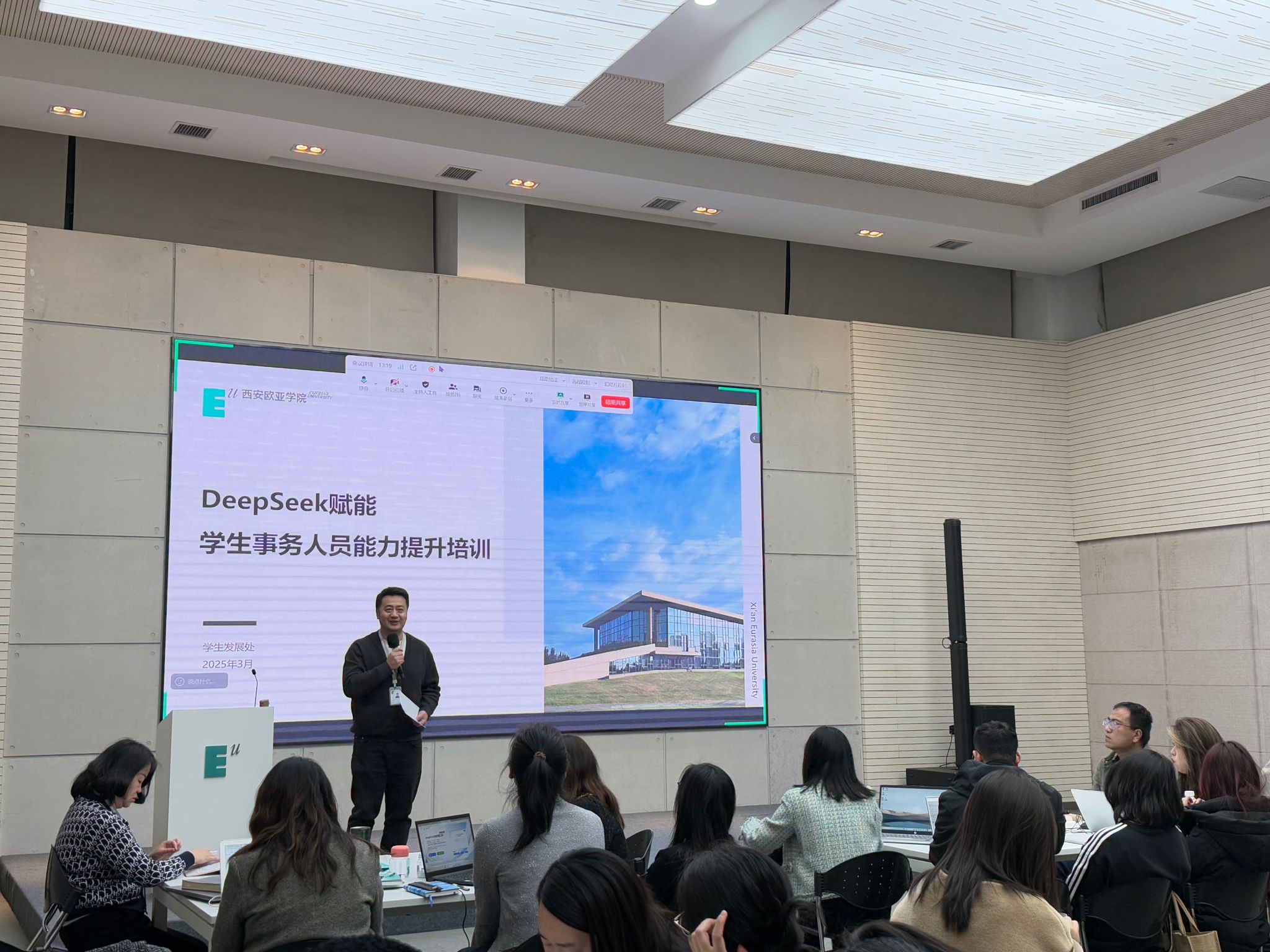 为不断提升欧亚学生事务人员职业能力和专业素养,推进学生事务工作专业化、智能化转型,学生发展处于3月31日举办《DeepSeek赋能学工队伍能力提升培训》。本次培训聚焦AI技术在日常学生管理中的应用,通过理论讲解、场景实操及交流研讨,助力学生事务人员掌握智能工具,以技术赋能学生管理与服务提质增效。
