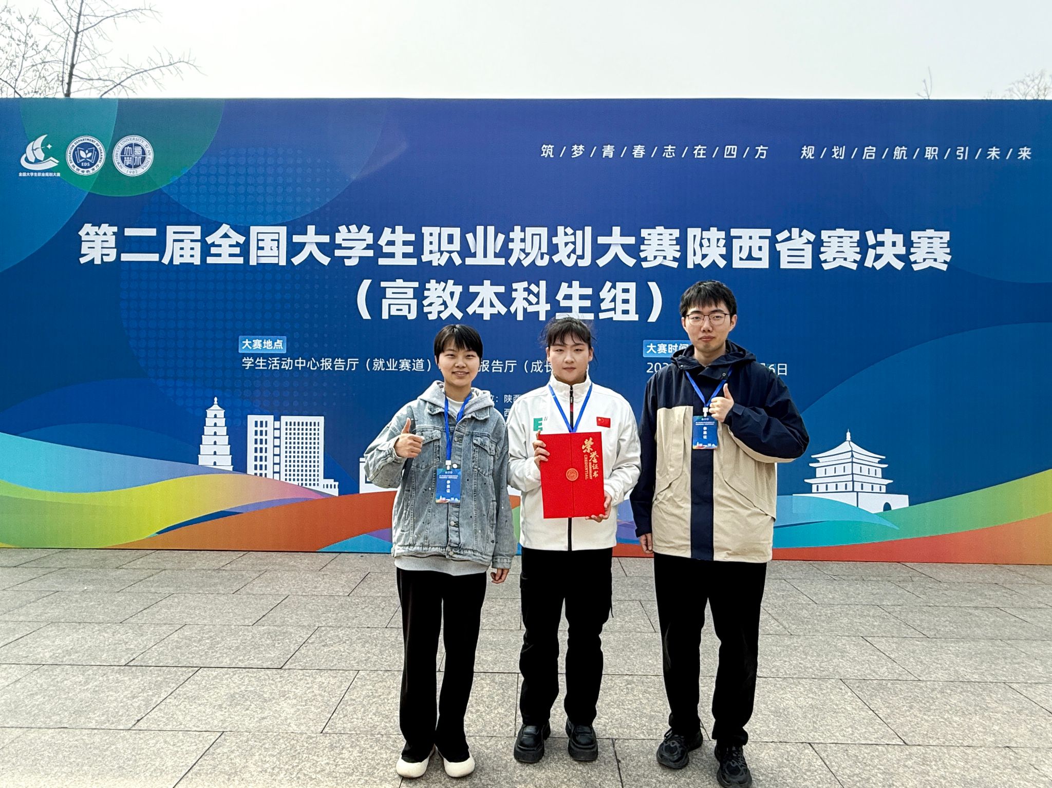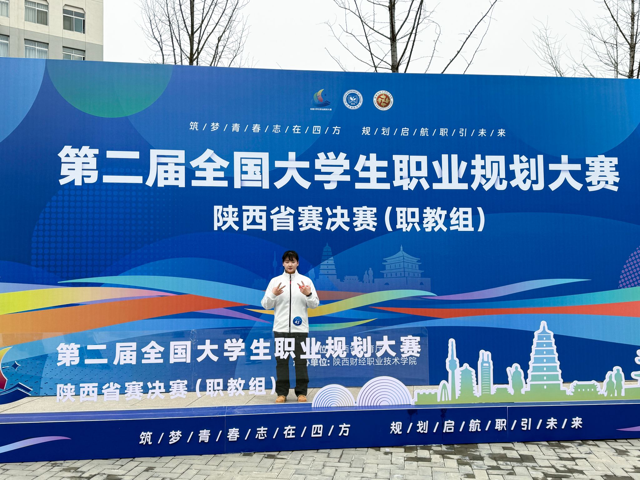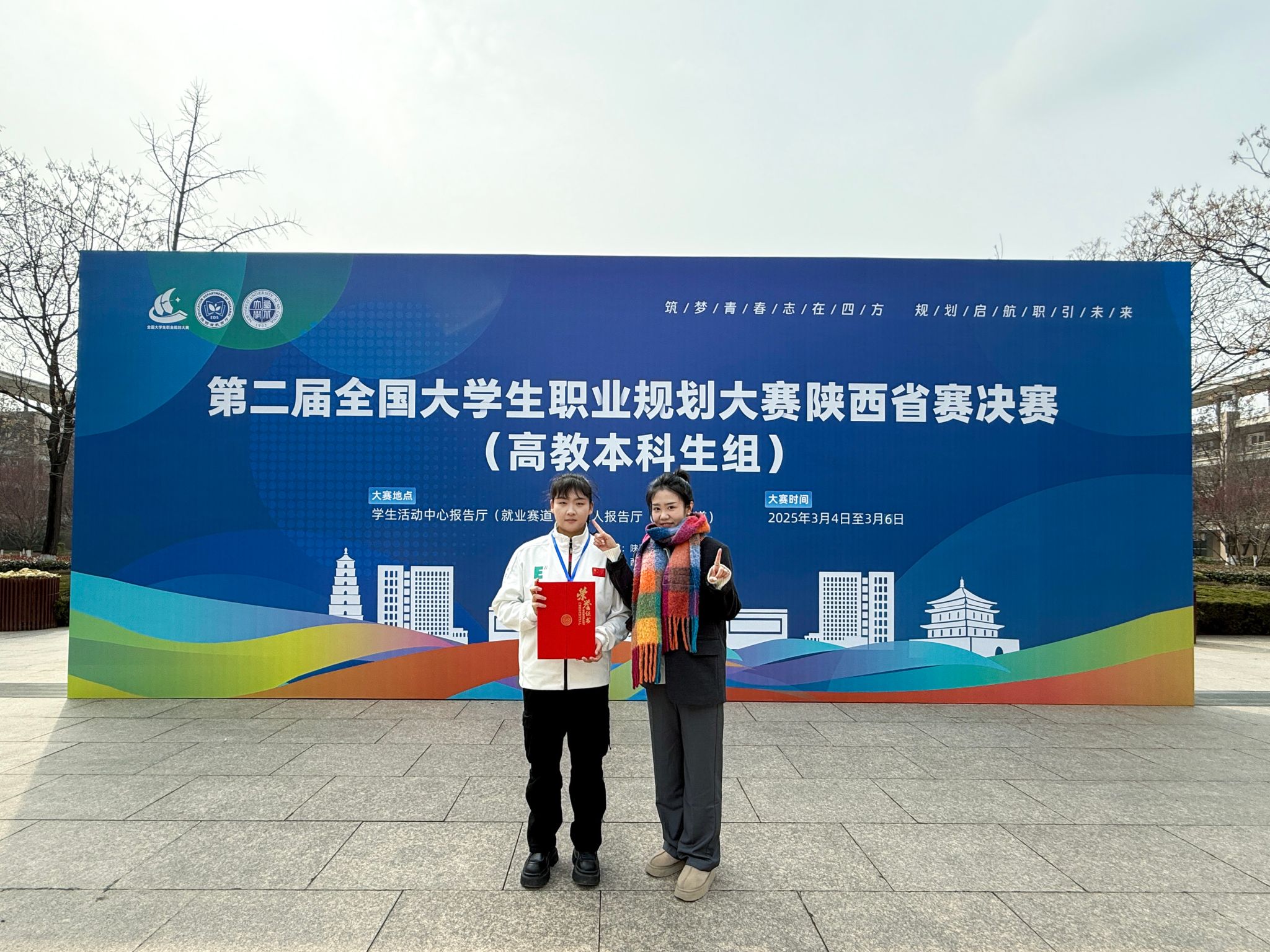2025 年3月6日,第二届全国大学生职业规划大赛陕西省总决赛圆满落幕,我校职业教育学院张婧哲、郭奕辰两位同学在大赛中崭露头角,分别荣获职教赛道金奖(全省仅5项)与高教赛道银奖(本科生组),指导教师石佳琪也凭借其卓越的指导能力,荣获 “优秀指导老师” 称号,为我院再添荣誉。