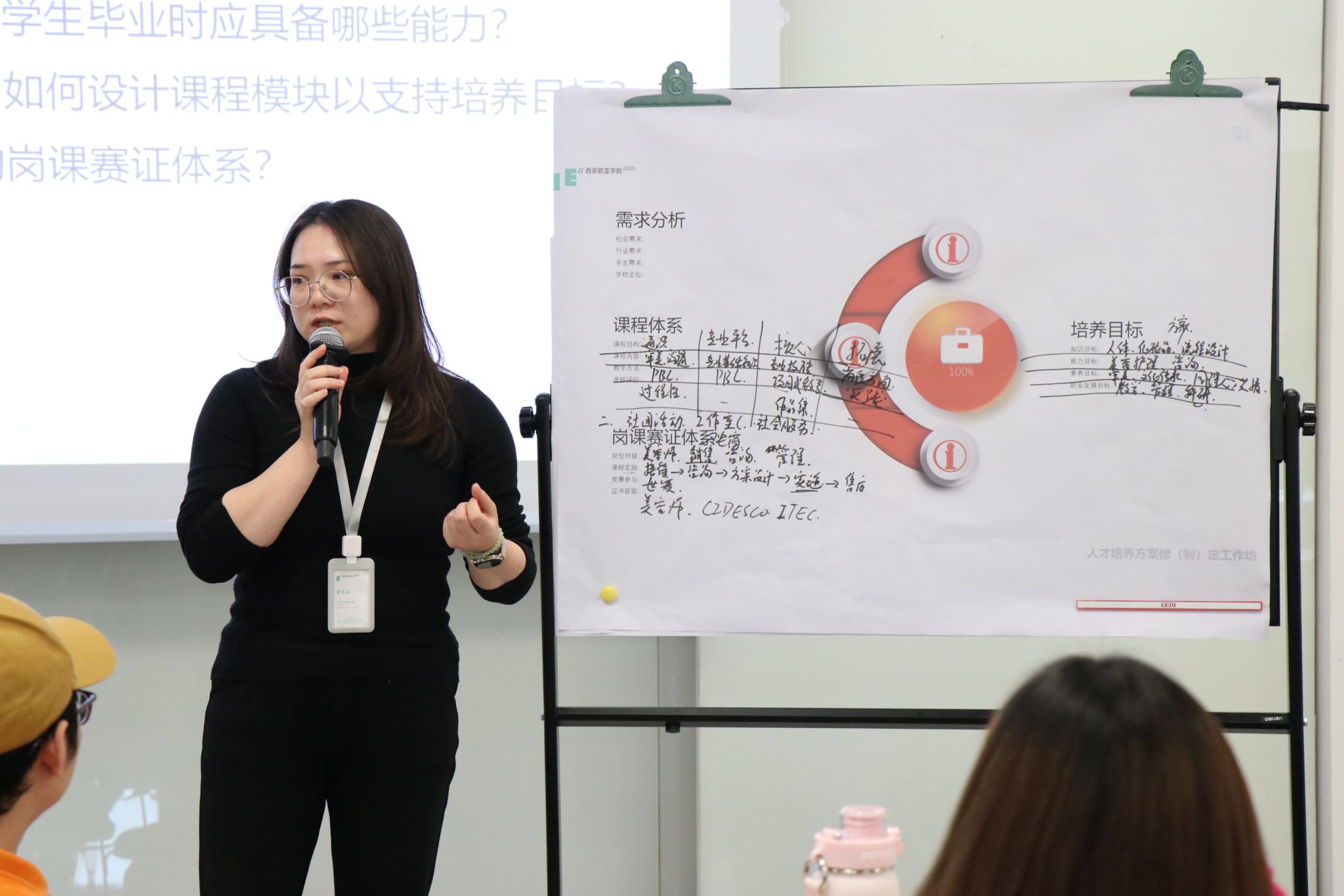 工作坊伊始,刘晓明老师引导参训教师分组梳理人才培养方案中的五大核心痛点(如课程滞后产业、实践教学薄弱、岗课赛融合不足等),刘晓明老师引导团队运用欧亚PBL工具包建立“问题-目标-路径”逻辑框架,明确修订方向。