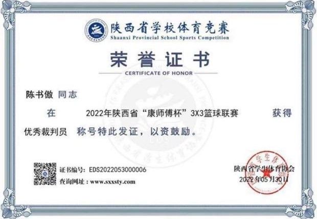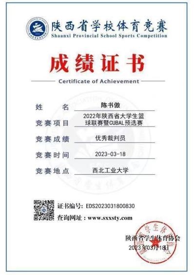 (2022年陕西省大学生篮球联赛暨CUBAL预选赛优秀裁判员)