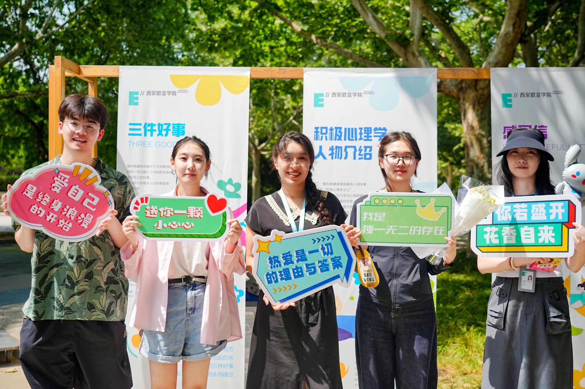 5月25日是一个充满温情的日子,也是“我爱我”全国大学生心理健康日。在这个专属于心灵的节日里,学生心理咨询中心联合各二级心理辅导站、校学生会及大学生心理健康协会,在5月21日14:00,以“爱自己,从此刻开始”为主题,在西安欧亚学院杜城道(图书馆前林荫大道)举办了一场别开生面的心理健康教育现场体验活动,近500名师生相聚于此,开启了一场与自我的深度对话。