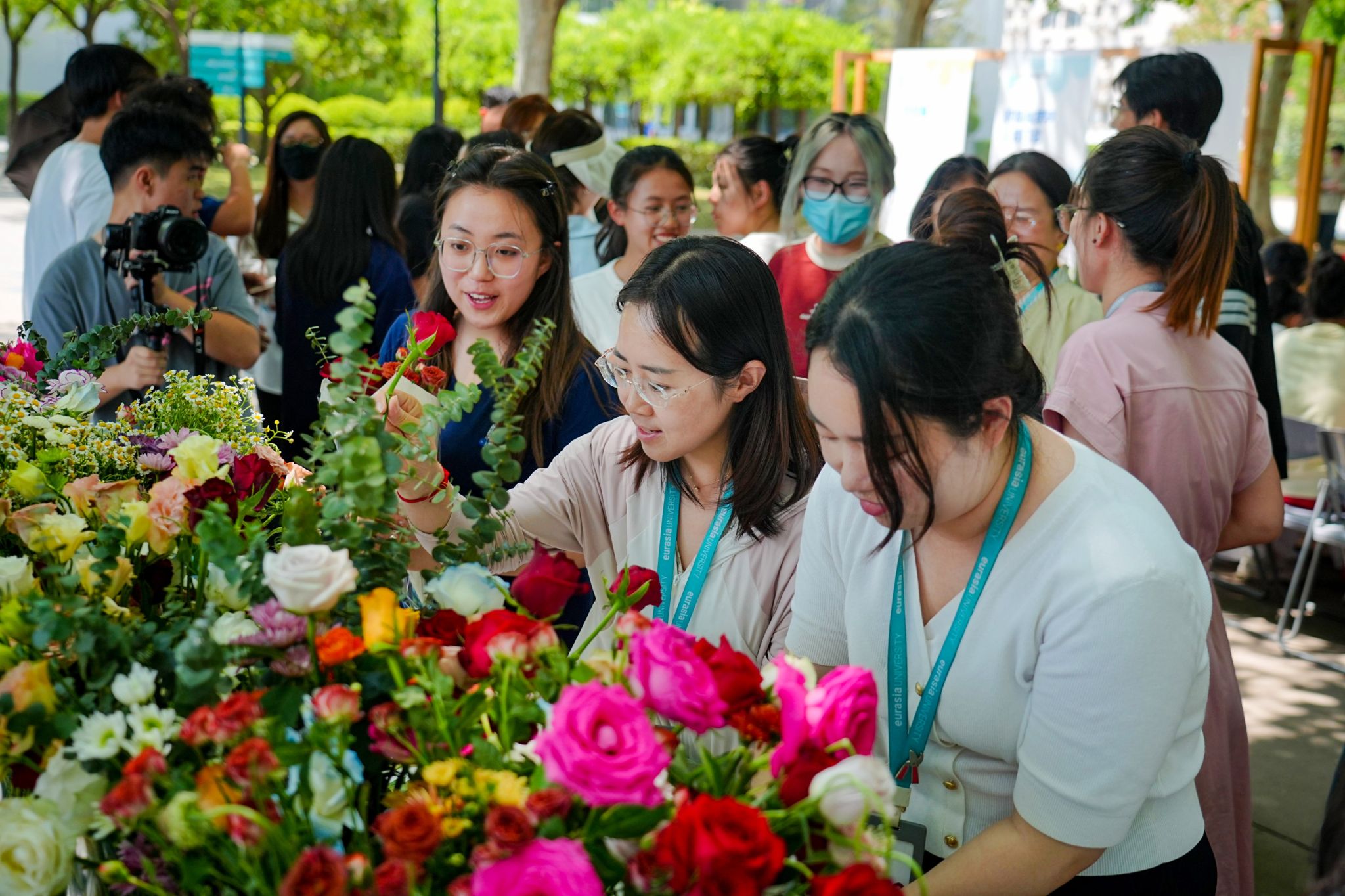 花,是自然界最动人的诗篇,也是心灵最温柔的映照,在心理学视角下,它们可以是情绪的容器、自我的投射,甚至是治愈的媒介。I²二级心理辅导站以花为媒介开展了“悦己π”心理健康教育现场体验活动,将认知行为疗法融入花艺DIY,揭开花朵与情绪奥秘,帮助学生重塑积极自我,通过活动也让学生觉察到悦己是认真对待每个“我喜欢”的时刻。