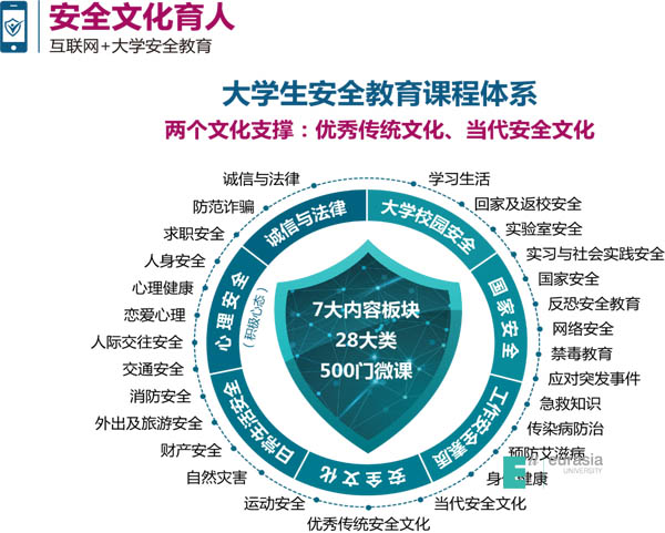 安全文化育人是学校安全工作的重点,也是学校育人工作的重点。作为全国首批引入入学前进行互联网+安全教育的高校,我校于2015年开始于北京麦课在线进行深度合作,通过安全微课微信端学习,将涉及大学生活、学习的安全注意事项以微课、视频、互动游戏的形式推送给即将进入大学的大一新生,有效提升了学生入学期间的安全风险意识,从本质上解决了长期以来高校中存在的安全教育难题。