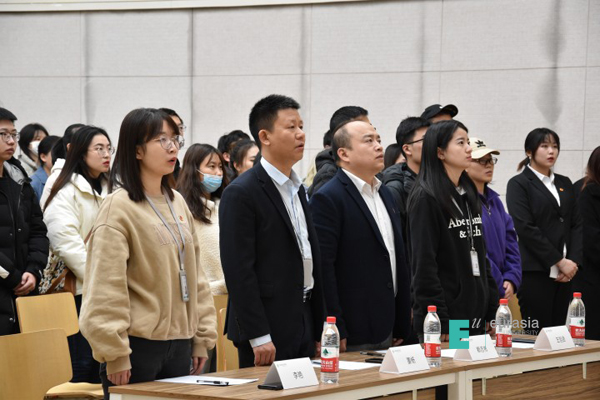 在庄严的国歌声中本次开班典礼拉开序幕。首先,校团委副书记李艳宣读课程安排,本次培训班包含了理论知识、社会实践、能力提升等方面的课程,帮助学生提高思想认识,提升综合素养。 接下来,校党委学工部副部长、校团委书记董杨为本次大骨班进行授旗;学员代表魏怡帆发言,要认真上课,按时完成各项作业,不断提高理论知识水平,努力成为“有理想、有本领、有担当”的新时代优秀青年。校党委委员、纪委副书记赖志彬在致辞中殷切希望广大学生干部要勇敢肩负起时代赋予的重任,志存高远,脚踏实地,努力在实现中华民族伟大复兴的中国梦的生动实践中放飞青春梦想。最后,在全体成员《光荣啊,中国共青团》响亮的歌声中,典礼顺利结束。