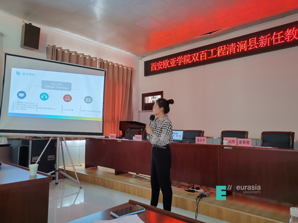 通识教育学院院长助理段永刚对国内外从传统到现代的教育理念进行了介绍和分析,为新老师们植入了最新的教育教学发展理念、拓宽了教育教学视野;课程负责人卢卓元老师结合清涧县特色文化,运用有效和高质量的写作与表达,以全新的思维使新任教师产生了共鸣和冲击;院长助理潘珊珊分享了以学生为中心的课程设计及质量评价,让新任老师理解了什么是好的课程设计以及如何利用课程评价标准对教学效果进行科学的评价;杨璐璐老师向大家介绍了设计思维的全新理念和实用工具的使用方法及现场实践;蒲转莉老师带领老师们探寻了情绪和压力的真相,给出了一系列专业的方法和建议,引导教师学会管理情绪,拥有阳光心态,快乐工作,幸福生活。