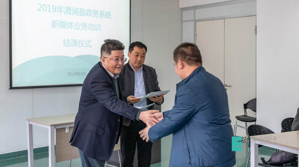 下午4点,“2019年清涧县政务系统新媒体业务培训”结课仪式。我校党委书记于孟晨、工会副主席晏建忠作为受邀嘉宾参加了此次结业仪式,于书记表示,“希望以此为契机,两个单位两个地域加强联系,共同为我们陕西的追赶超越做出扎实的贡献。”随后,于书记为各位学员颁发结业证书。