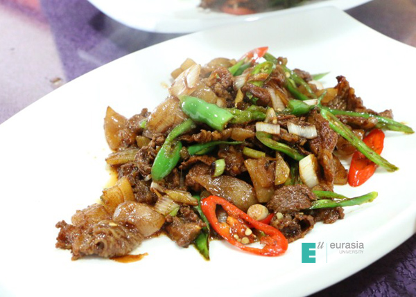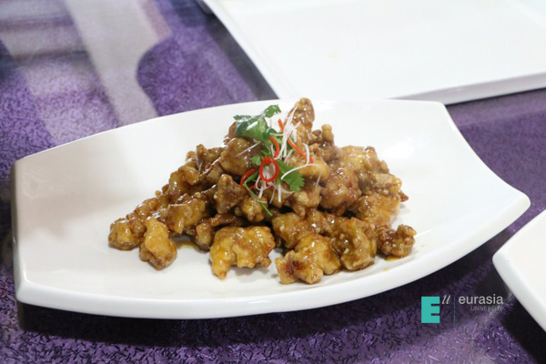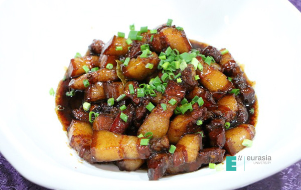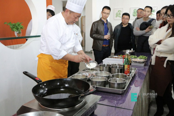11月21日下午,我校在金桥餐厅二楼举办主题为“欧亚味道”的清涧县黑毛土猪肉烹饪培训活动,参与的人员有校工会副主席晏建忠、清涧县产品经理王晓娟、以及学校教职工等共计80余人,由清涧县贺永军、学校郑大厨负责掌勺培训。
