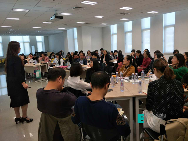 培训主要分为三个板块,第一板块是教学理念板块,孙老师引用我校董事长胡建波教授给学生的寄语开篇,阐述西安欧亚学院是一所追求教育理想、拥有鲜活教育价值观的学校,它的人才培养目标是培养社会适用的应用型创新性人才。