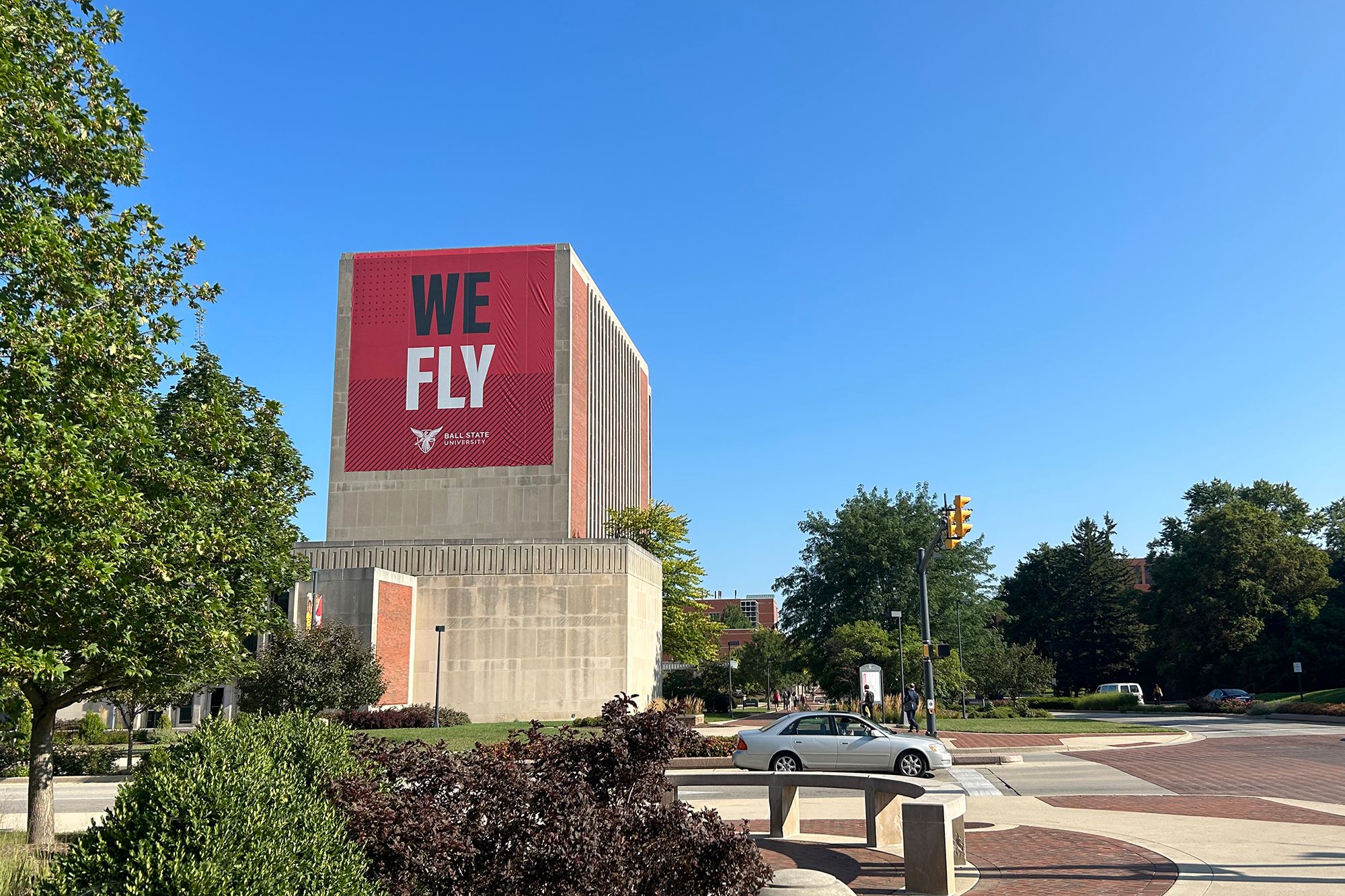 (图3)鲍尔州立大学校园内校徽和标志色无处不在
