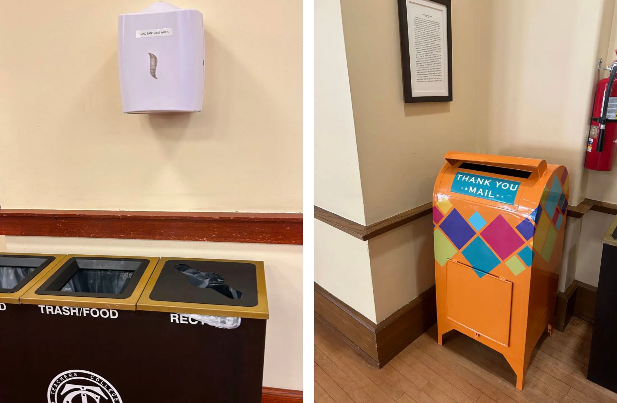 另一个让我印象深刻的地方,就是这些大学文化中所体现出的对人本身的珍视。大学教育的一个核心是要让人找到更加合理的存在方式。在大学这个场域里,人更需要被看到、被重视、被尊重,因为只有经历这样的体验,才能真正学习如何正确地对待自己和他人。可以轻松开门,方便轮椅使用者进出的按钮;安装在垃圾桶上方,为手部消毒的湿巾盒;教学楼里必备的饮水装置;图书馆里巨大的玩具熊,陪伴你阅读或是小憩一会儿;“THANK YOU MAIL”为校园里默默工作的服务人员写下一些暖心的话……你的大学在珍重地对待你,你也将带着这样的善意和同理心走向今后的人生。