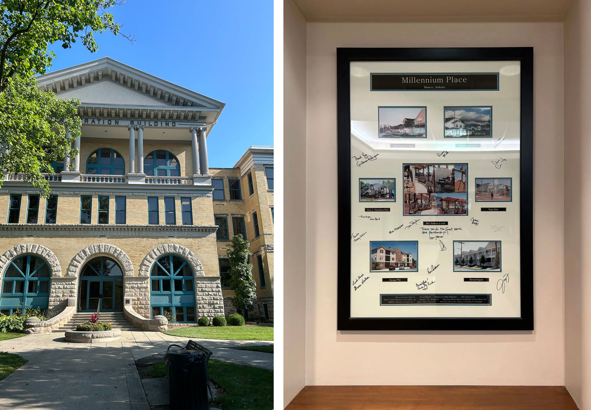 (图1)鲍尔州立大学行政中心外观及内部装饰,建于1918年