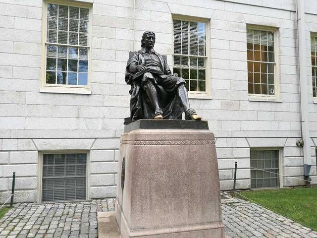(图8)约翰·哈佛牧师像。他将自己一半的财产和所有的图书捐赠给一所新成立的学院,即后来的哈佛大学