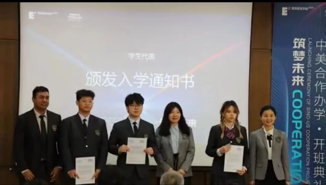 各位学生代表依次上台,由老师为他们颁发入学通知书。从学生们的笑容和眼神中,可以看出他们对未来四年中外合作办学学习生活的无限期待。
