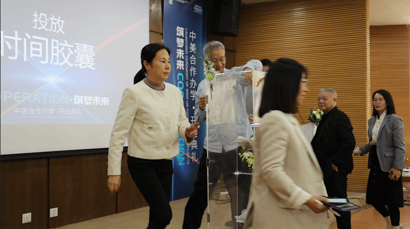 接下来是最具有仪式感的一个环节:投放时间胶囊。同学们写下对未来的期待,投入箱子里封存,等待下一个时间开启,看看时间所带来的变化。