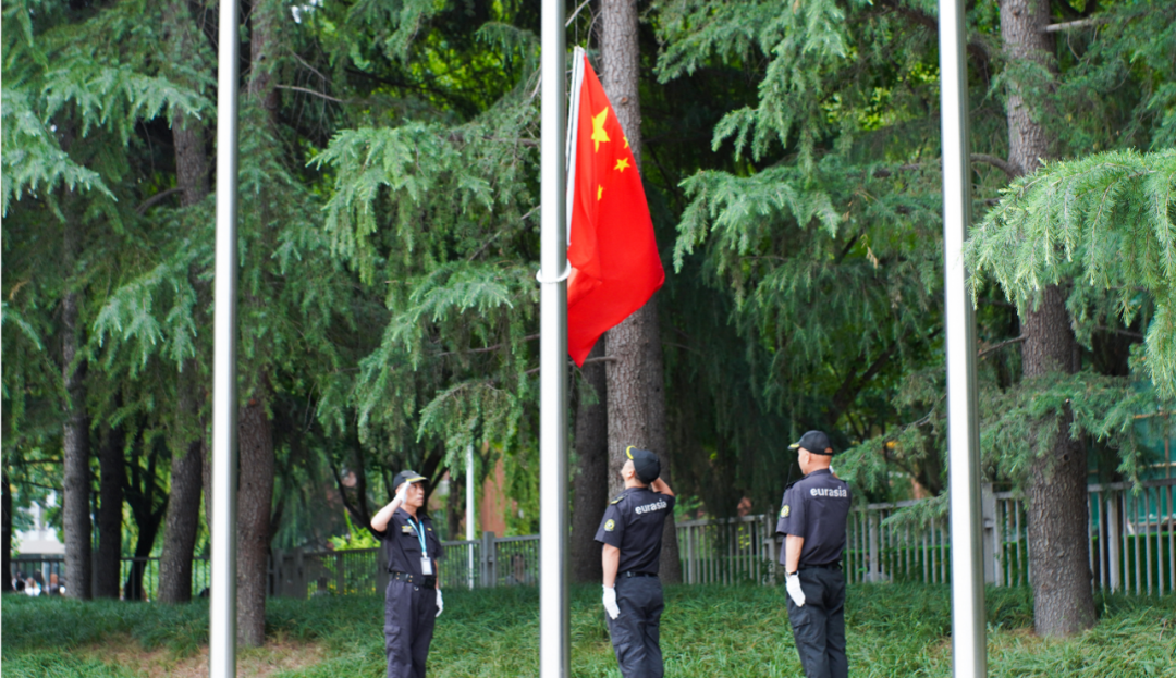 清晨8点,国歌奏响,全体师生缓行注目礼,五星红旗冉冉升起。此刻,全体师生心中充满了对祖国的热爱和自豪。