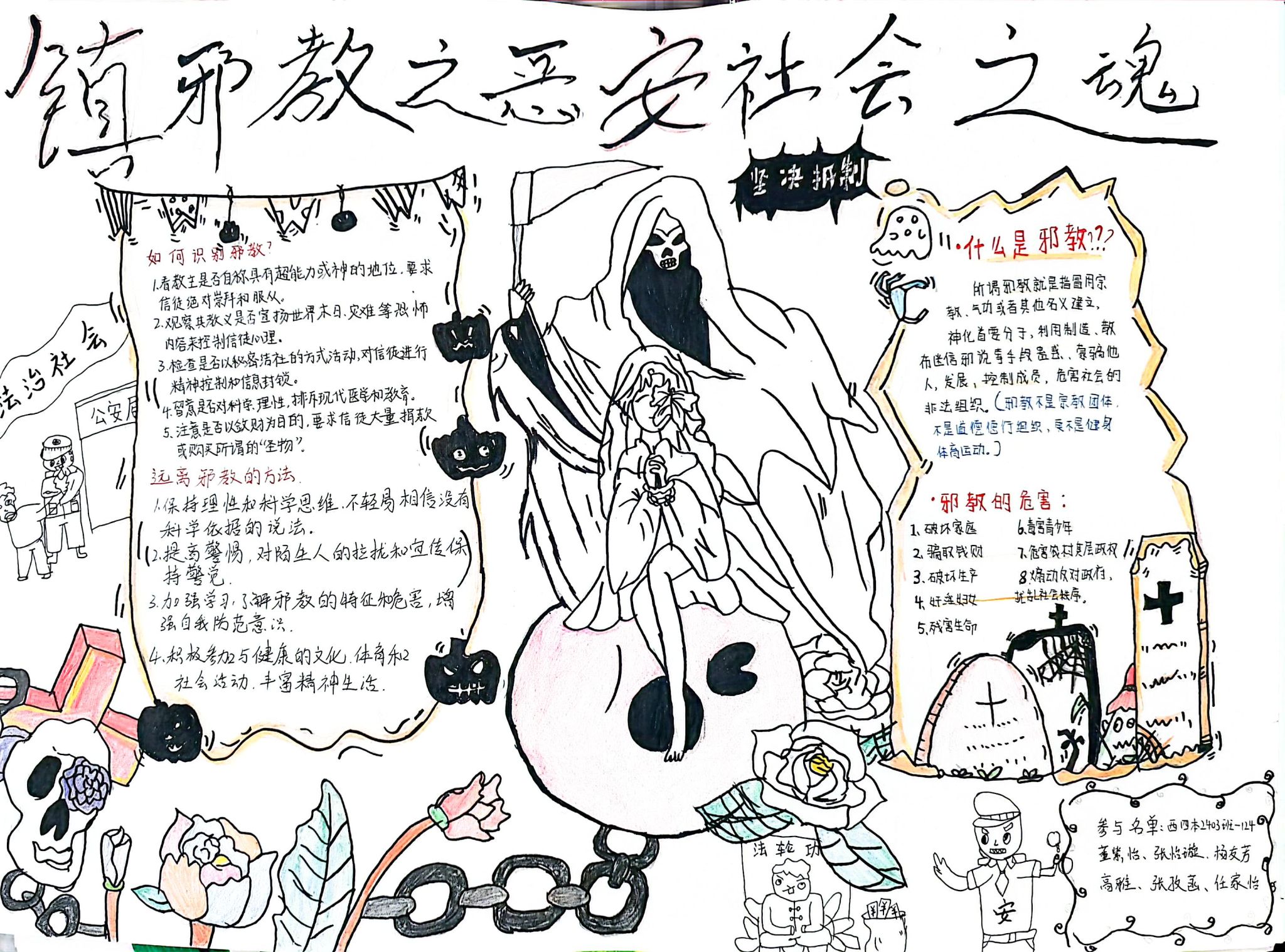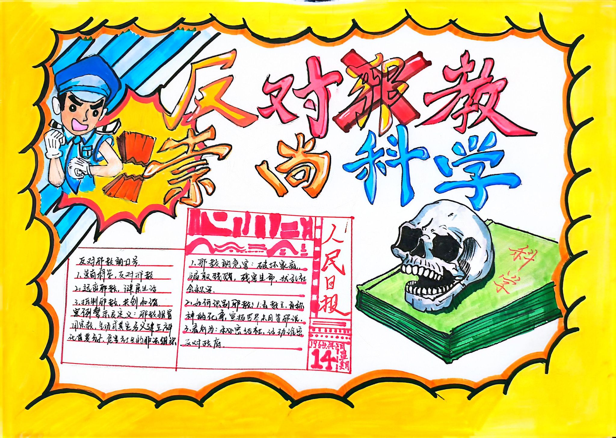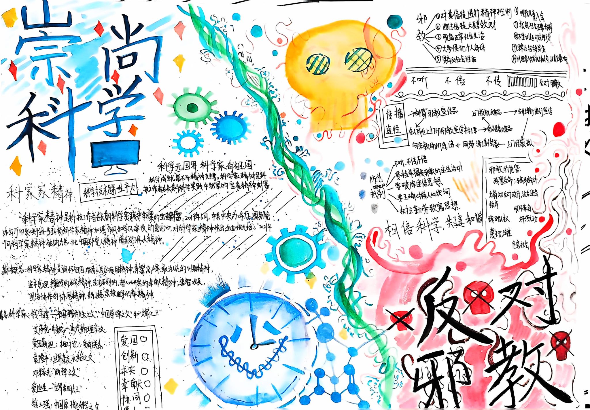 我们欣喜地看到,每一位参赛者都以饱满的热情和独到的见解,通过手抄报这一传统而富有创意的形式,传达了对邪教的坚决抵制和对科学精神的热爱。这些作品,是青春智慧的结晶,也是我们共同抵制邪教、追求真理的坚定宣言。让我们一同走进这场智慧与艺术的盛宴,感受学生们如何用画笔和文字,绘就对科学的热爱和对邪教的坚决抵制。以下是部分优秀作品的展示: