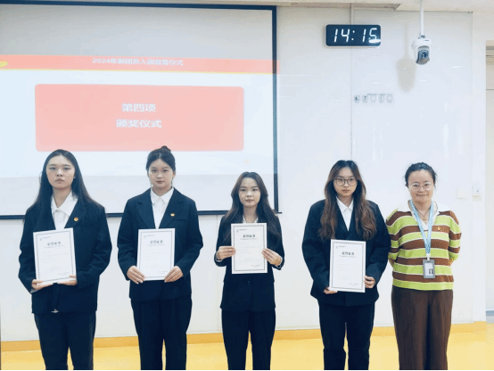 紧接着,孙傲然老师、徐梦佳老师为新团员代表佩戴团徽,并为优秀学员颁发证书。新团员们用自己的实际行动诠释了青年的责任与担当,为我们树立了榜样。
