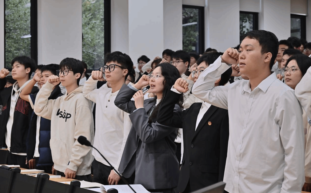 会议中通过简短的视频,向同学们详细阐述了团员应履行的职责和享有的权利,为新发展团员们指明了前进的方向。团委书记王晨晨老师带领新团员宣读入团誓词。这不仅是新发展团员们对团组织的承诺,更是对未来自我的期许与激励。