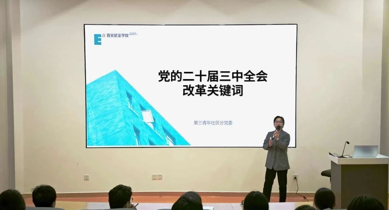 为深入学习宣传贯彻党的二十届三中全会精神,用习近平新时代中国特色社会主义思想武装头脑、指导实践、推动工作,切实提高学生党员的思想觉悟,第三青年社区分党委于11月14日开展了《党的二十届三中全会“改革”关键词解读》专题党课,分党委组织委员王焱同志进行主讲,第三青年社区分党委党员代表共计80余人参加了本次党课学习。