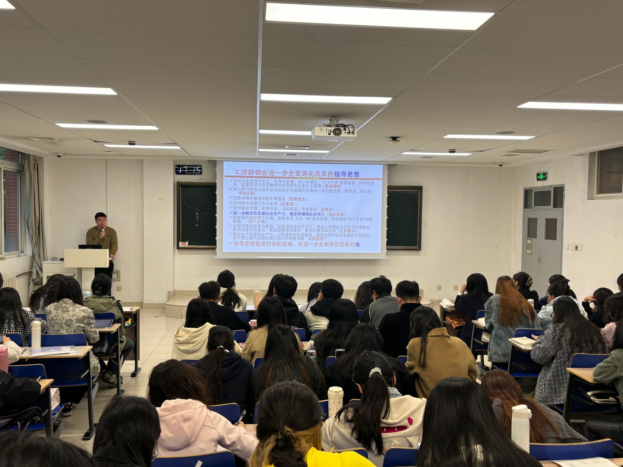 为深入学习贯彻党的二十届三中全会精神,引导学生党员深刻领会关于全面深化改革、推进中国式现代化的一系列重要思想和重要论断,切实提高自身的政治觉悟和全局意识,第二青年社区分党委于近期开展了《新思想引领新时代改革开放》专题党课,由马克思主义学院的老师刘一丰进行主讲,第二青年社区分党委本期发展对象共计70余人参加了本次党课学习。