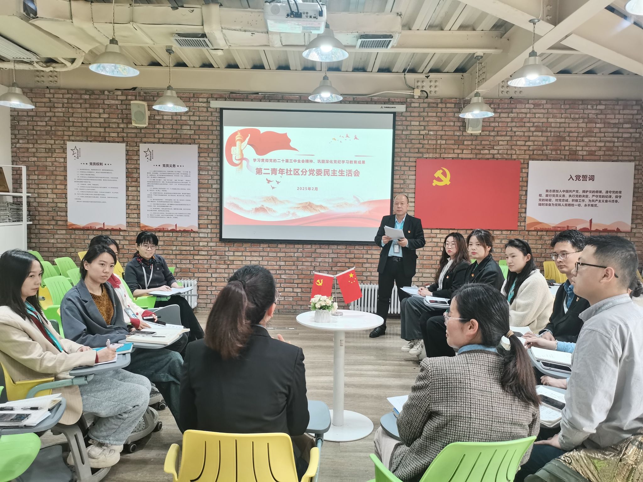 为全面落实校党委《关于开展2024年度基层党组织组织生活会和民主评议党员工作的通知》要求,2025年2月28日,第二青年社区分党委在团辅室召开2024年度民主生活会。分党委书记白利宁同志、副书记张庚同志及全体辅导员党员参会,学生工作部部长、学生发展处处长董杨同志、学生工作部副部长陈劲松同志列席指导。以刀刃向内的勇气查摆问题,以真刀真枪的批评凝聚共识,推动党建引领育人工作提质增效。