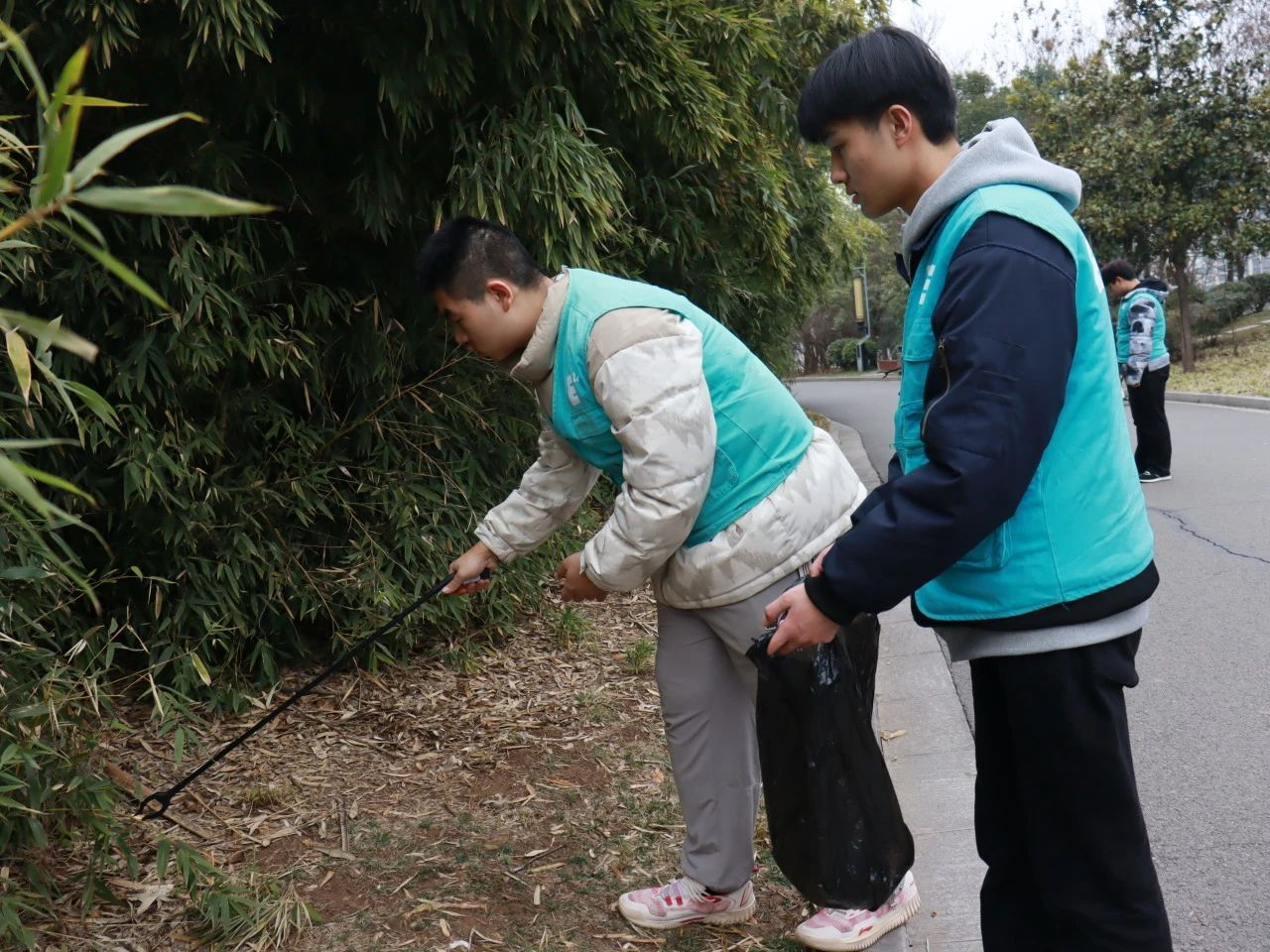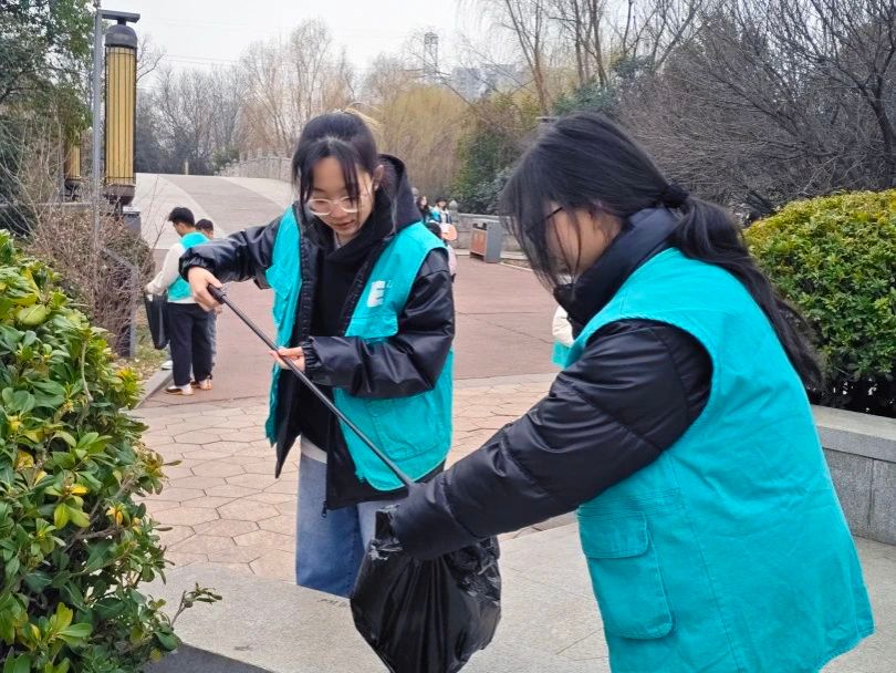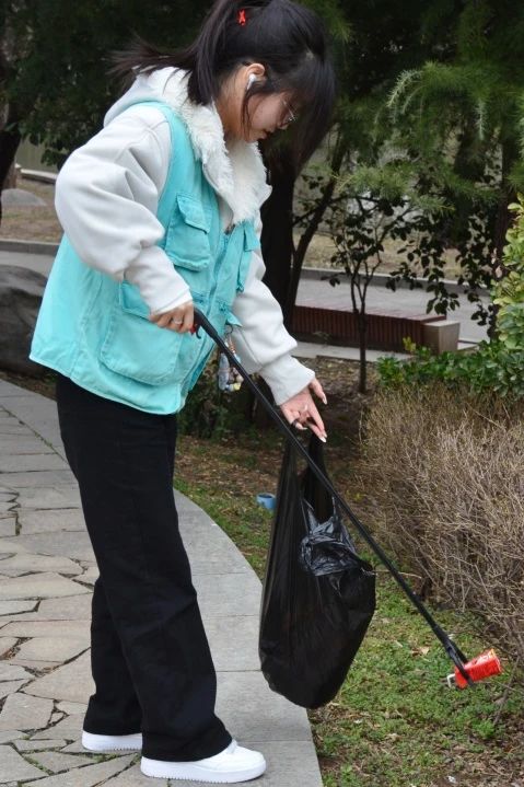 他们或弯腰捡拾散落在步道旁的烟蒂、纸屑,或细心清理湖边漂浮的塑料瓶、食品包装袋。有的同学两两组队,有的同学自力更生,沿着路边、顺着山坡、绕着绿化带等各个地方,认真仔细的清理着里面的垃圾,用实际行动践行“绿水青山就是金山银山”的环保理念。