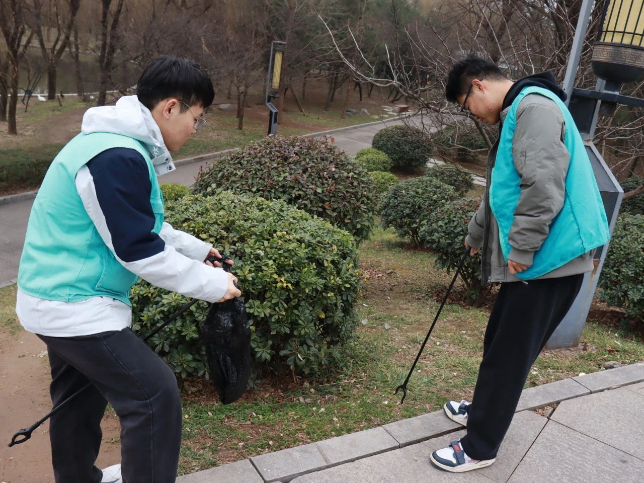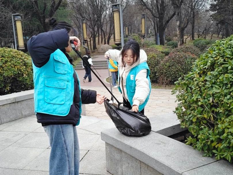 3月5日中午13:10分,志愿者们排着整齐的队伍从欧亚学院东门出发,沿着西部大道步行前往西安市清凉山森林公园。志愿者身着统一的欧亚绿马甲,手持环保工具,带着对大自然的热爱与对雷锋精神的敬仰,准时集合在公园门口。志愿者们迅速分成三个小队,分赴公园的各个区域,开始了紧张而有序的环境清洁工作。