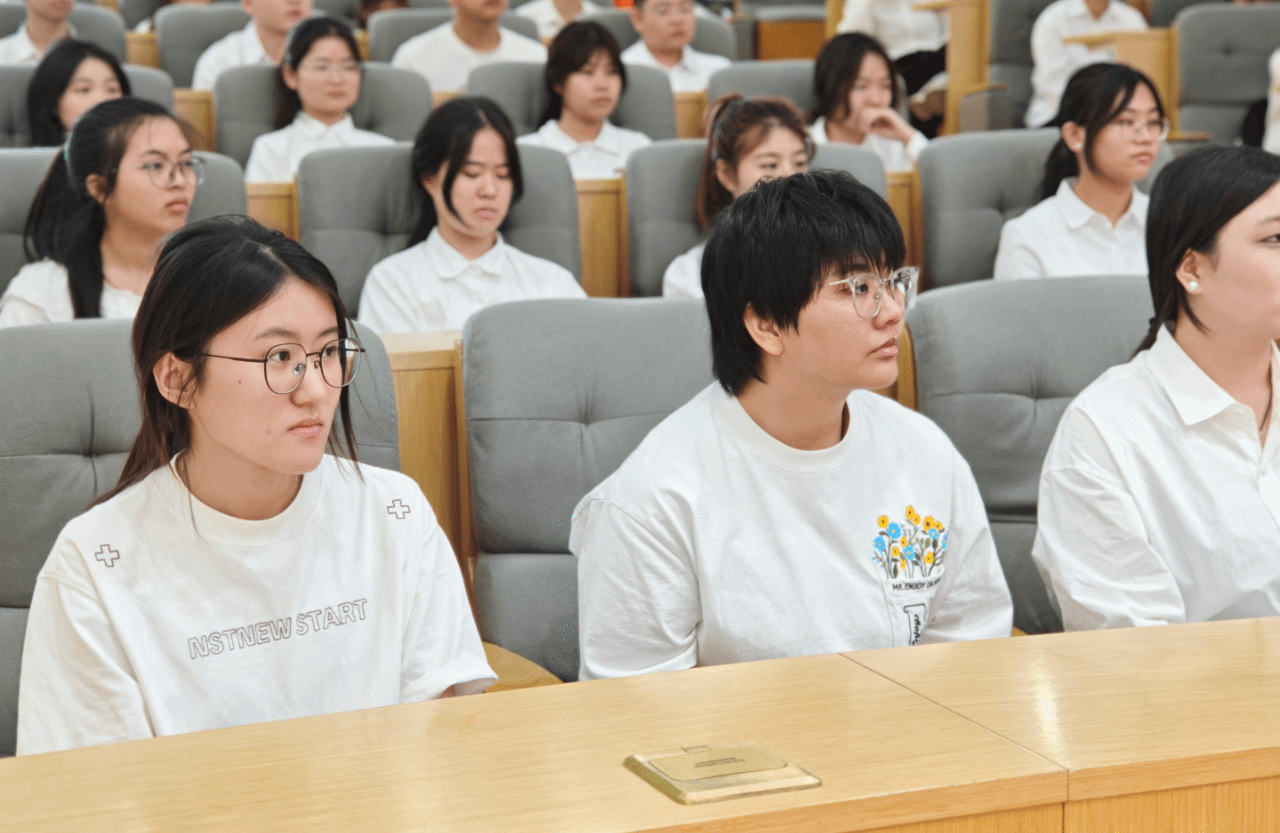 入党积极分子代表孔莎菲尔进行发言。她表示,小时候,党是爷爷口中“没有共产党就没有新中国”的铿锵旋律;上学后,党是课本里焦裕禄、黄文秀等榜样扎根人民、无私奉献的身影;而今天,党是我心中那盏指引方向的明灯。她呼吁全体学员要珍惜这次学习机会,加强自身的品德修养,树立正确的世界观、人生观和价值观,做到诚实守信、正直善良、勇于担当。要以党员的标准严格要求自己,在思想上、行动上积极向党组织靠拢。