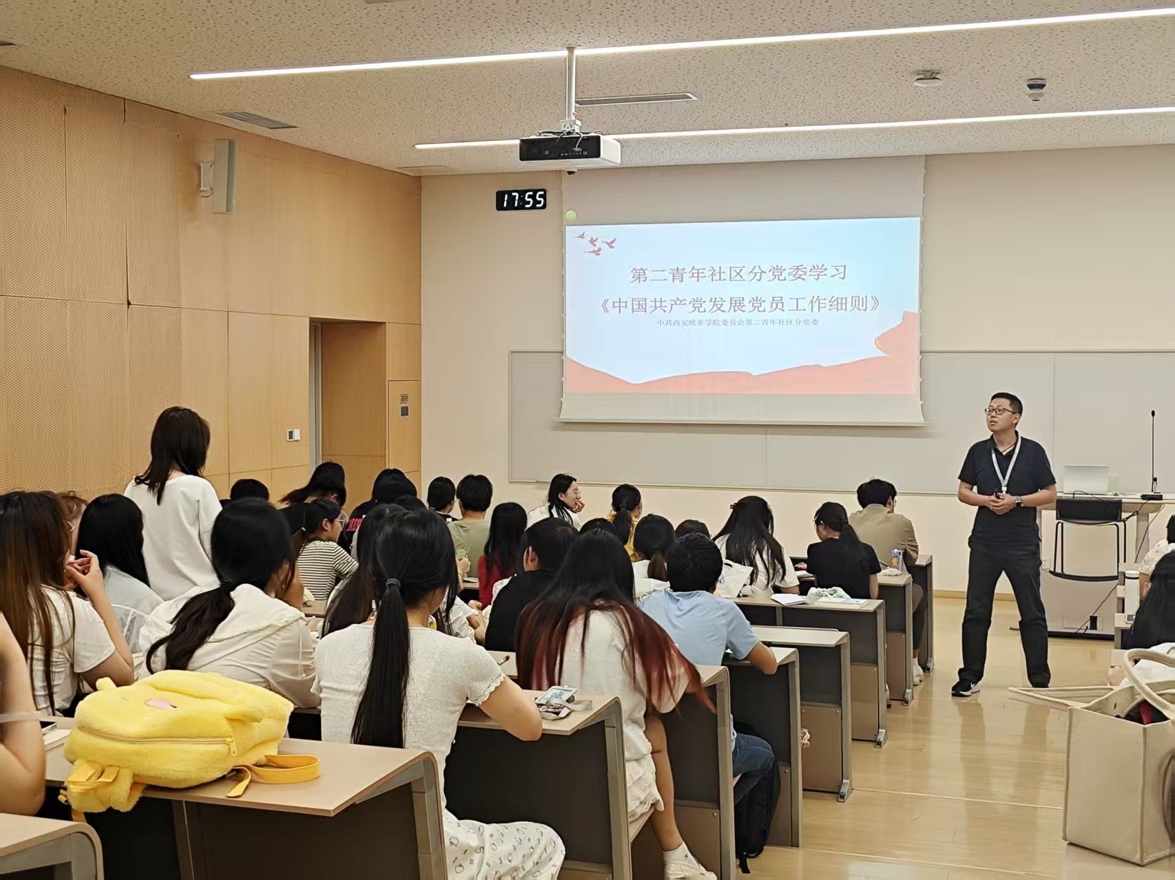 为深入贯彻党的二十大精神,进一步增强学生的社会责任感。第二青年社区分党委于5月20日在北E-206组织开展了《中国共产党发展党员工作细则》专题党课。本次党课由孙傲然主讲,138名入党积极分子参与学习。