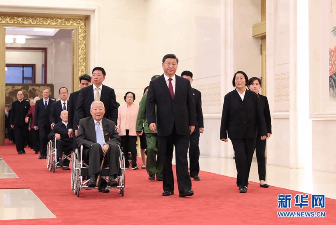 9月29日,中华人民共和国国家勋章和国家荣誉称号颁授仪式在北京人民大会堂金色大厅隆重举行。习近平等党和国家领导人同国家勋章和国家荣誉称号获得者合影。 新华社记者 庞兴雷 摄