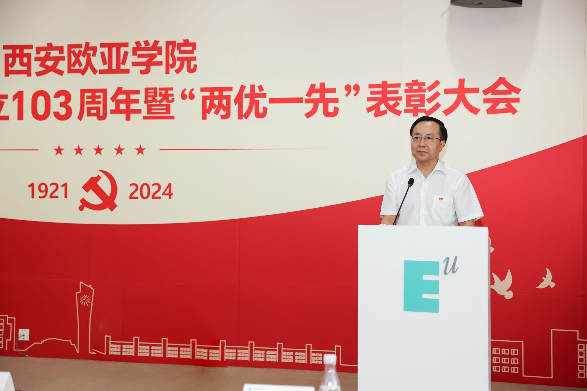 党委书记赵国华代表学校党委向全校各级党组织、教职工党员及青年学生党员致以节日的问候,并发表题为《弘扬建党精神 坚持立德树人 为谱写学校高质量发展新篇章作出新的贡献》主题报告。
