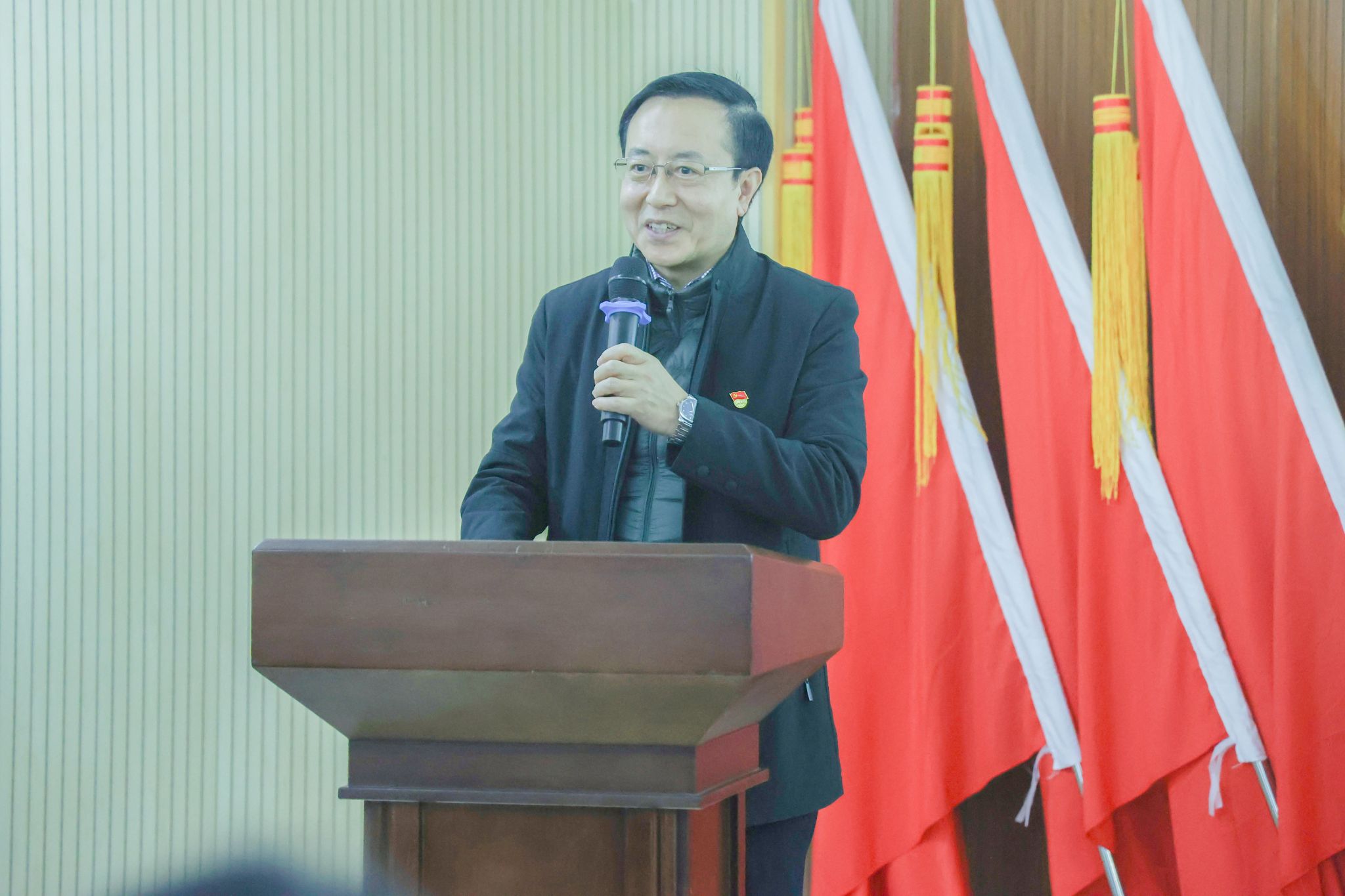 党委书记赵国华在讲话中指出,在这里举行主题党日活动,追寻习近平总书记考察时的足迹,是非常有意义,也是非常有必要的。他强调,全体教工党员要遵循学生思想政治工作规律、学生成长规律,把正确政治方向和价值导向贯穿始终,助力学生成长;全体学生党员要努力学习文化知识,不断提升个人能力和政治素养,努力争做德智体美劳全面发展的社会主义建设者和接班人。希望参学师生通过此次活动,移景入脑,以情入心,悉心体悟习近平总书记“国之大者”“守护中央水塔”“当好秦岭生态卫士”的殷殷嘱托,坚定奋进的方向,汲取奋进的力量,增强责任感与使命感,为实现中华民族伟大复兴贡献自己的力量。