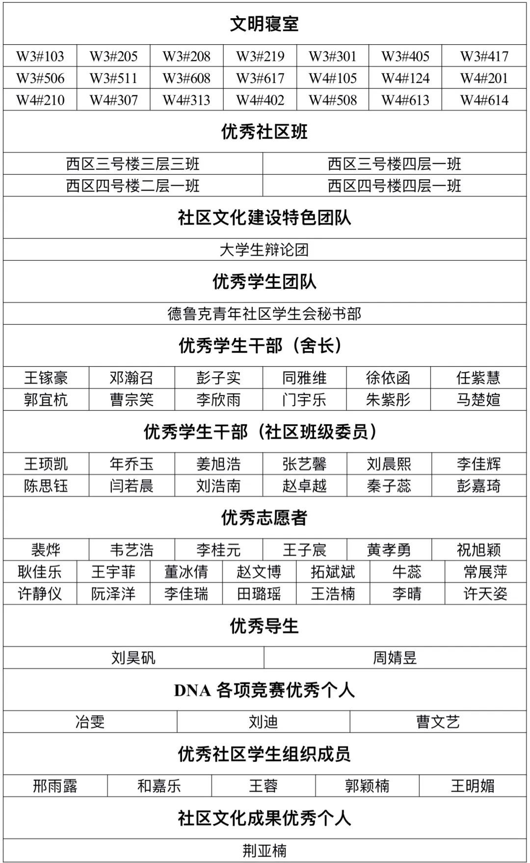 吴桐老师为文明宿舍获奖学生代表颁奖优秀社区班我们的社区是一个大家庭,是所有人力量凝聚的中心。在这个大家庭里,由很多的社区班组成温暖的小家庭,他们团结友善、积极向上、管理有效。今天,他们将从幕后走向台前,接受属于自己的荣誉。